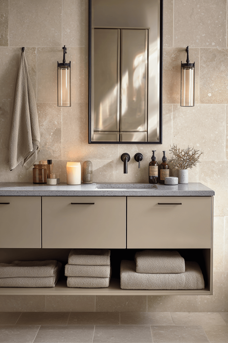 Tech-Integrated Vanities reflect the forward-thinking mindset of 2026 bathroom trends by blending smart features into sleek cabinetry. Built-in charging drawers, touchless faucets, LED task lighting, and defogging mirrors create seamless daily routines. Despite the technology, the design remains streamlined with handle-free drawers and minimalist finishes. This integration keeps countertops clutter-free and enhances overall functionality. It works because modern lifestyles demand efficiency without compromising on aesthetics. Discover how to incorporate smart vanities into your next bathroom refresh.