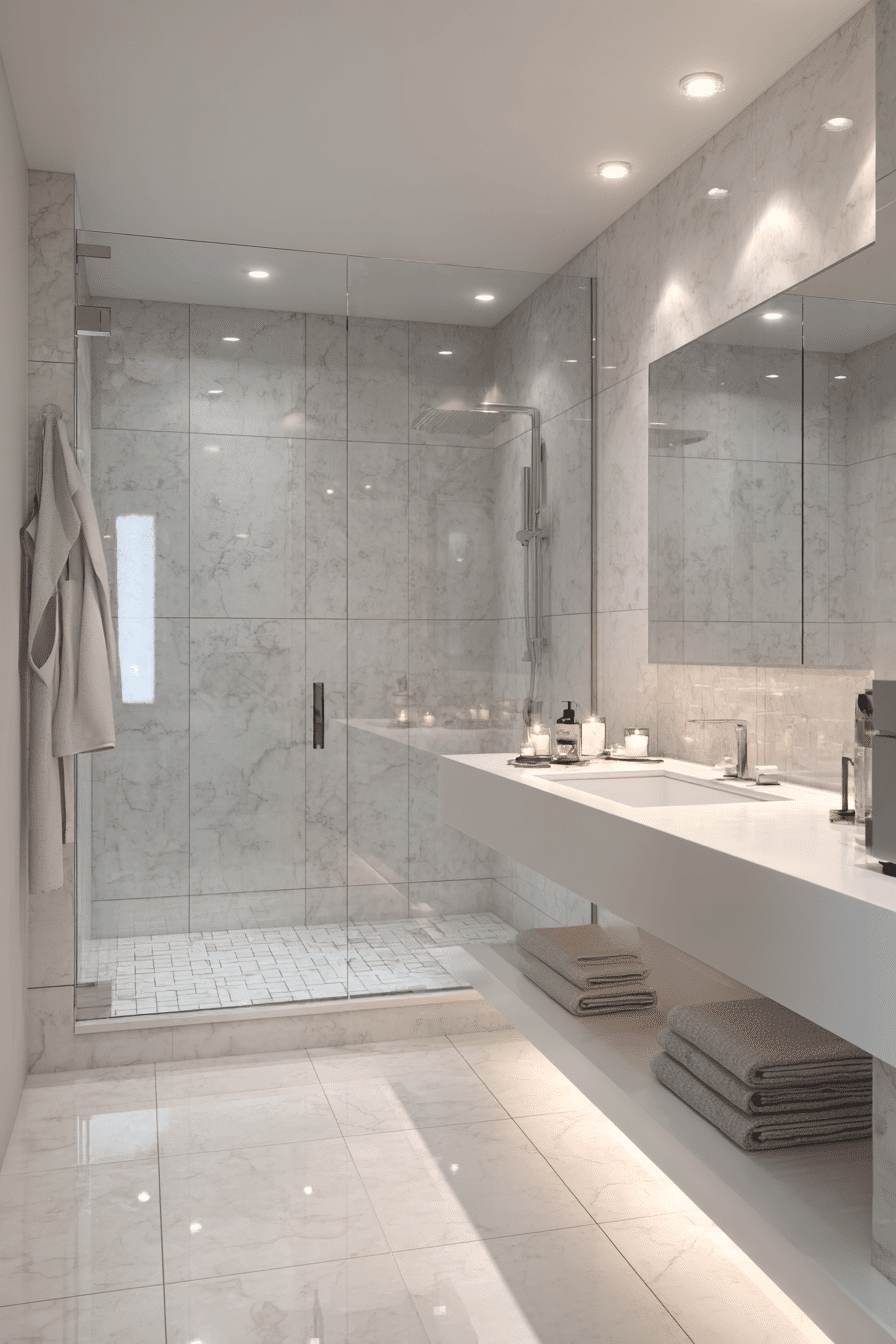 Hidden Storage Luxury defines 2026 bathroom trends by keeping everything organized behind sleek, uninterrupted surfaces. Concealed cabinetry, recessed niches, and built-in shelving maximize function without visual clutter. Floating vanities and wall-mounted fixtures make small spaces feel larger and more refined. This trend supports minimalism while ensuring practicality remains front and center. It works because homeowners want serene environments that still handle everyday demands effortlessly. Click to explore smart storage ideas for a polished look.