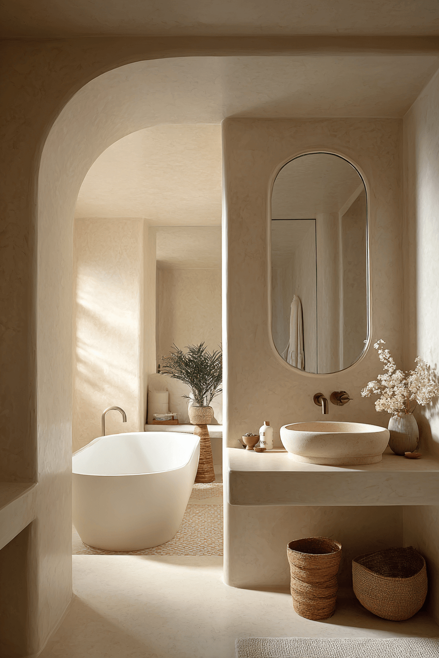Curved Edge Minimalism is gaining momentum in 2026 bathroom trends by softening rigid modern lines. Rounded vanities, oval mirrors, and softly contoured sinks create visual harmony. These curves make spaces feel welcoming and organic while still maintaining a minimalist aesthetic. Combined with muted tones and matte finishes, the result is understated elegance. This trend works because it balances structure with subtle fluidity. Explore how gentle curves can modernize your bathroom gracefully.