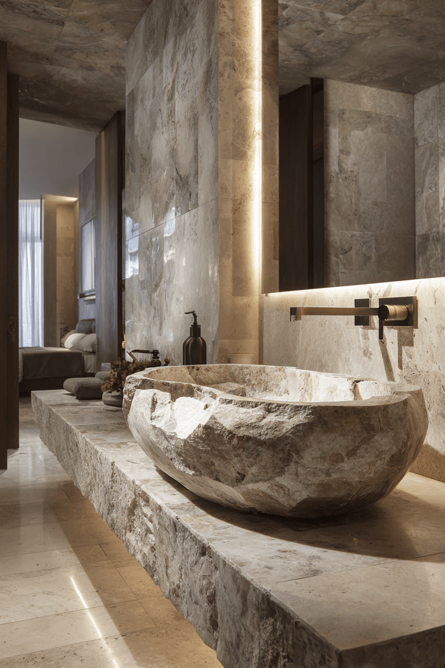 Statement Stone Sinks are becoming focal points within 2026 bathroom trends, showcasing carved marble, travertine, or granite basins. These sculptural pieces double as art while remaining highly functional. Their natural veining adds one-of-a-kind character to modern vanities. Paired with minimalist faucets, they create a striking contrast. This trend works because it combines durability with undeniable luxury appeal. Explore how a stone sink can anchor your bathroom design.
