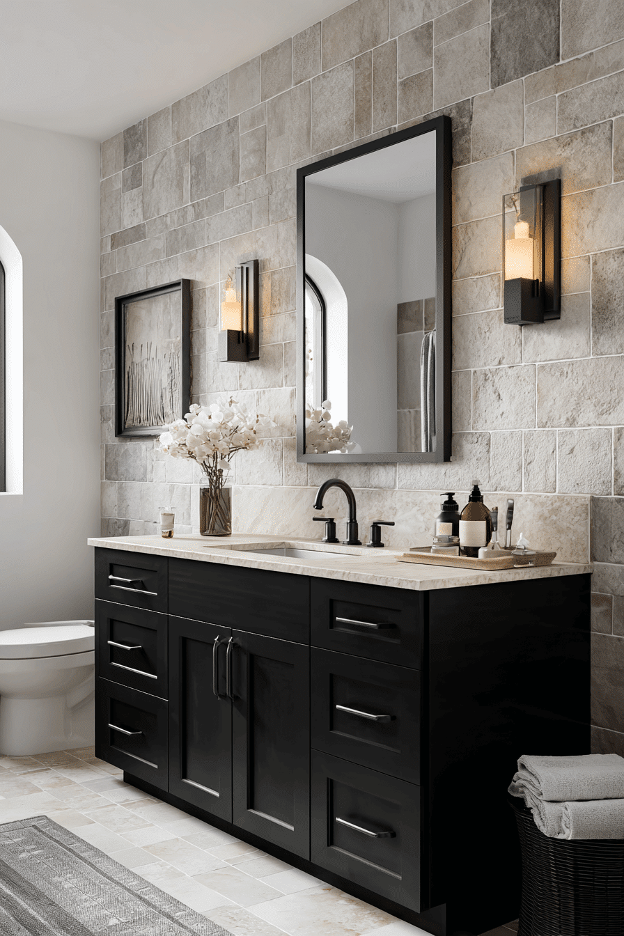 High-Contrast Modernism is energizing 2026 bathroom trends with bold pairings like black and white, dark wood and pale stone, or matte black fixtures against bright tile. The dramatic contrast creates visual impact without excessive ornamentation. Sharp lines and defined shapes emphasize architectural structure. Balanced lighting prevents the look from feeling harsh. This trend works because it delivers bold personality while staying undeniably modern. Click to see how contrast can redefine your space.
