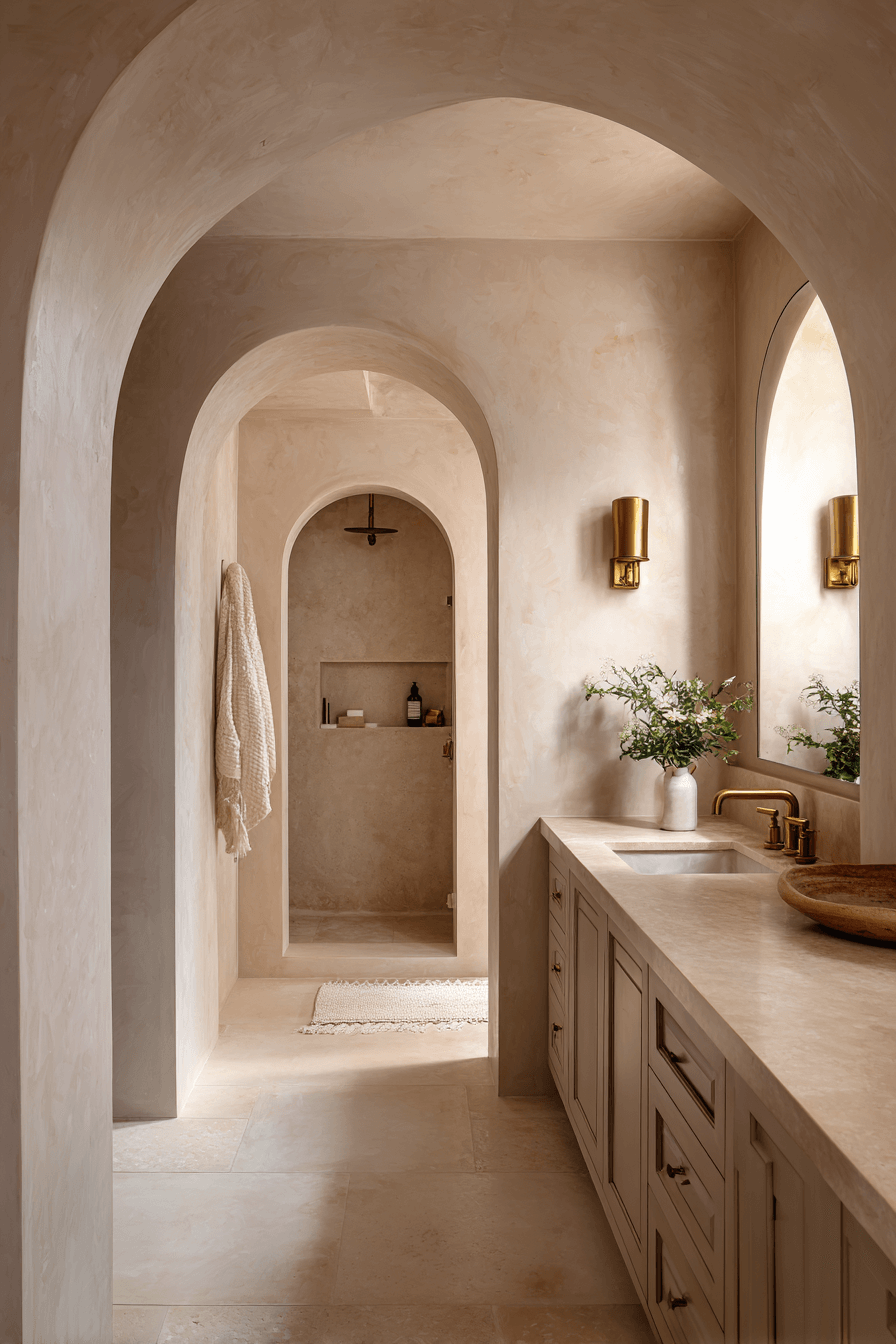 The Soft Arch Revival introduces gentle curves into 2026 bathroom trends, replacing sharp edges with elegant, rounded silhouettes. Arched mirrors, curved shower entries, and rounded vanities add architectural interest without overwhelming the space. These soft shapes create flow and make bathrooms feel more welcoming and serene. Paired with muted palettes and layered lighting, arches feel both contemporary and timeless. This trend works because it blends modern design with subtle romantic charm. Tap to see how curved details can soften your bathroom beautifully.