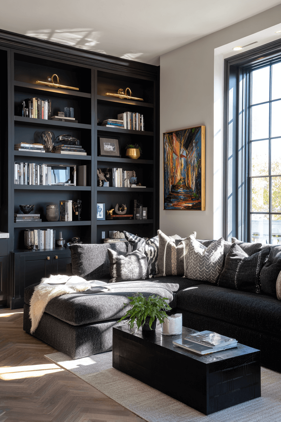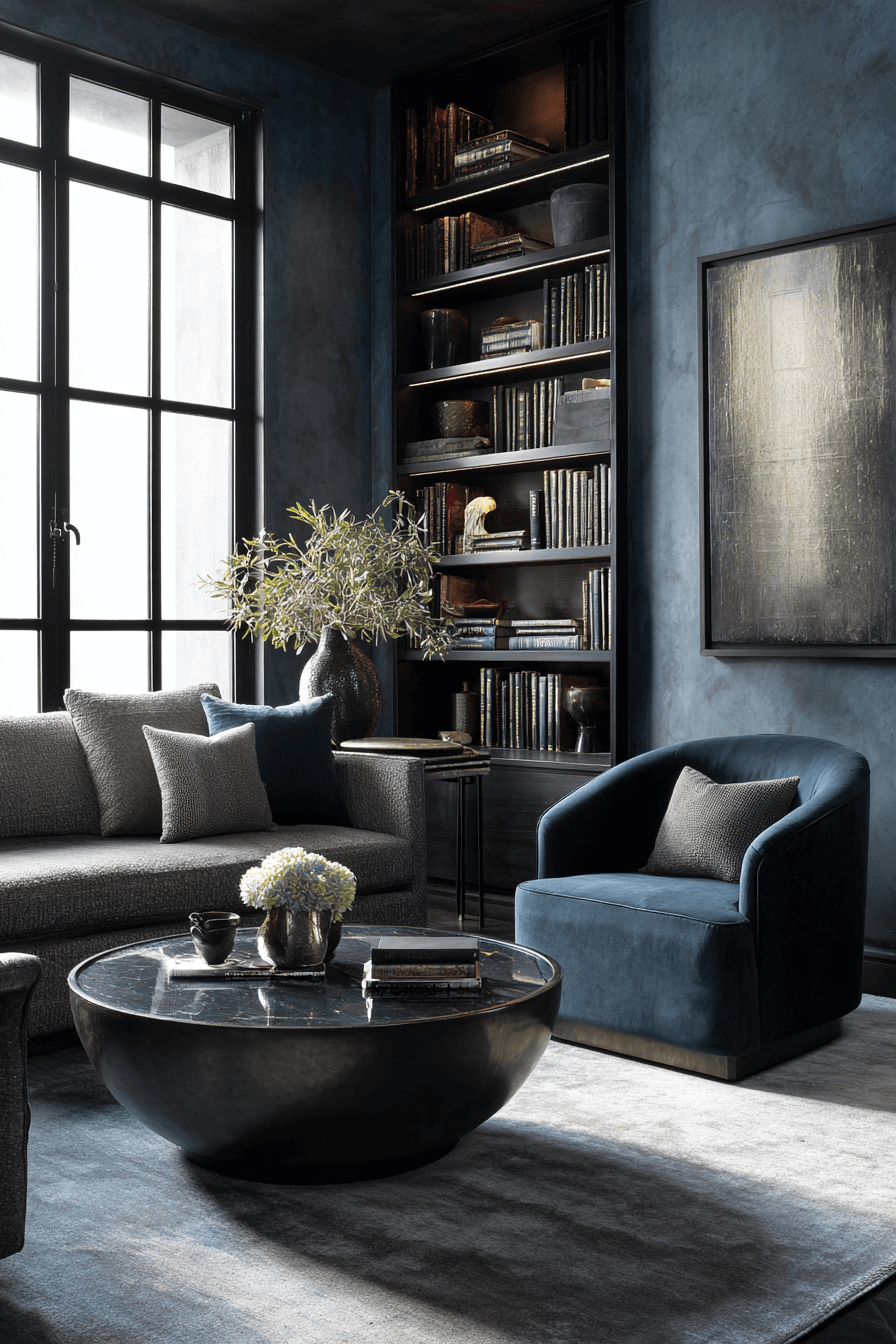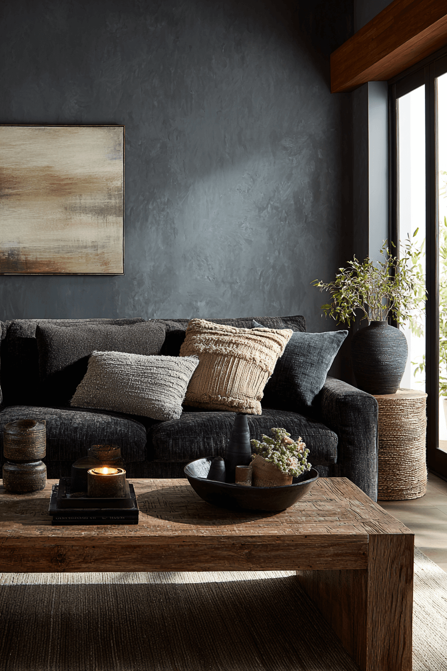 Moody natural textures embrace deeper shades like charcoal, espresso, and forest green layered with wood and stone. The contrast adds richness while still feeling organic and livable. This look supports 2026 home design trends because depth and texture are replacing flat, one-dimensional spaces. It creates intimacy without sacrificing sophistication. The overall mood feels dramatic yet inviting. Explore how to add depth to your home now.