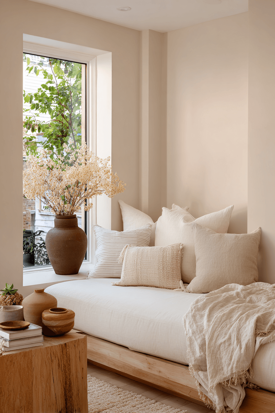 Warm minimalist retreat proves that minimal doesn’t have to mean cold or stark. Soft beige walls, cozy textiles, and natural wood accents add warmth while keeping the layout clean and uncluttered. This direction fits seamlessly into 2026 home design trends as people prioritize comfort and emotional well-being at home. It’s about editing down your space but keeping the soul intact. The result feels airy, grounded, and deeply relaxing. Tap to explore how to create your own serene retreat.