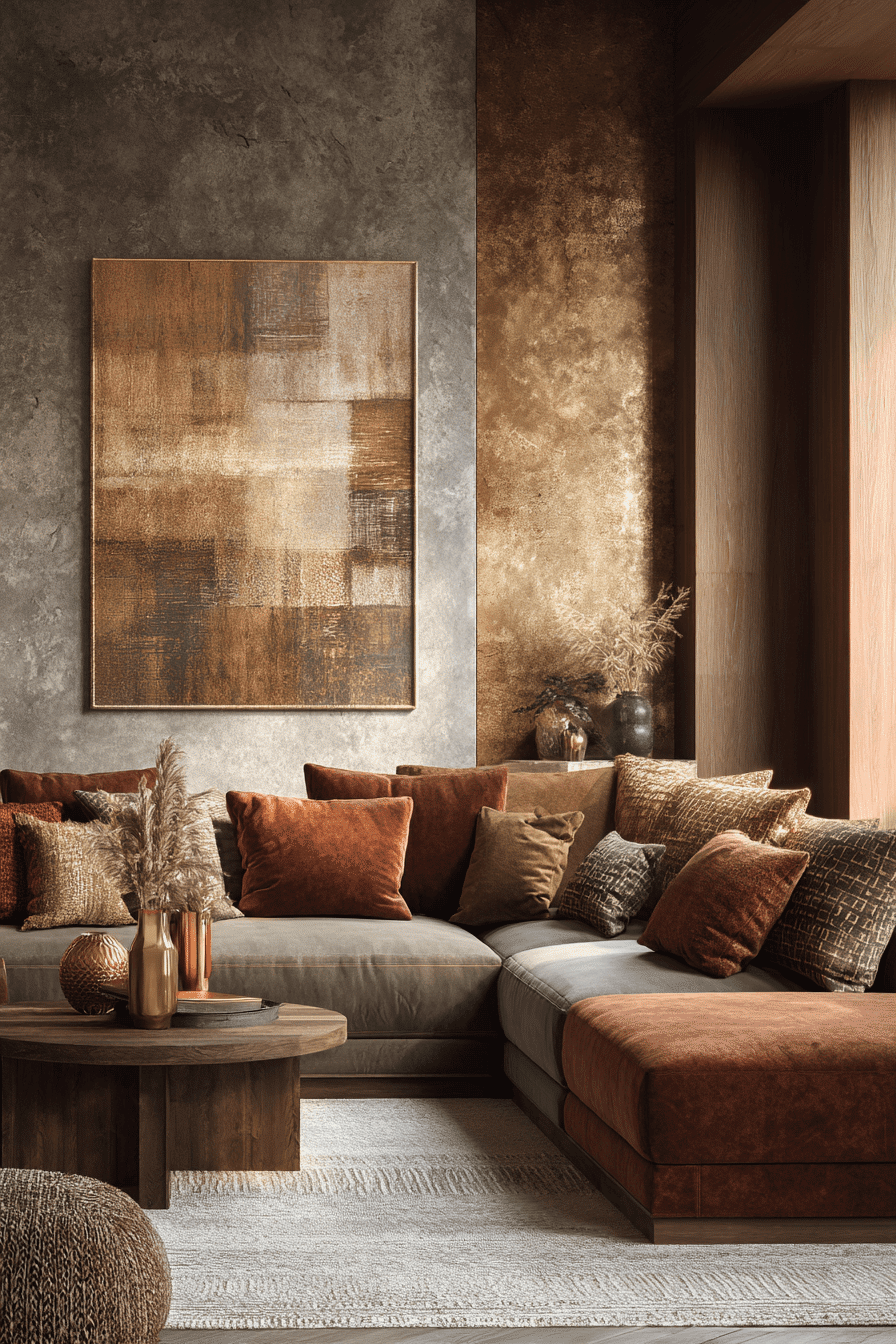Earth-toned sophistication layers browns, terracotta, and muted greens for depth. These tones feel grounded yet elevated. It aligns seamlessly with 2026 home design trends as warmer palettes dominate design conversations. The colors create comfort and elegance simultaneously. It feels both cozy and upscale. Tap to embrace rich earth tones in your space.
