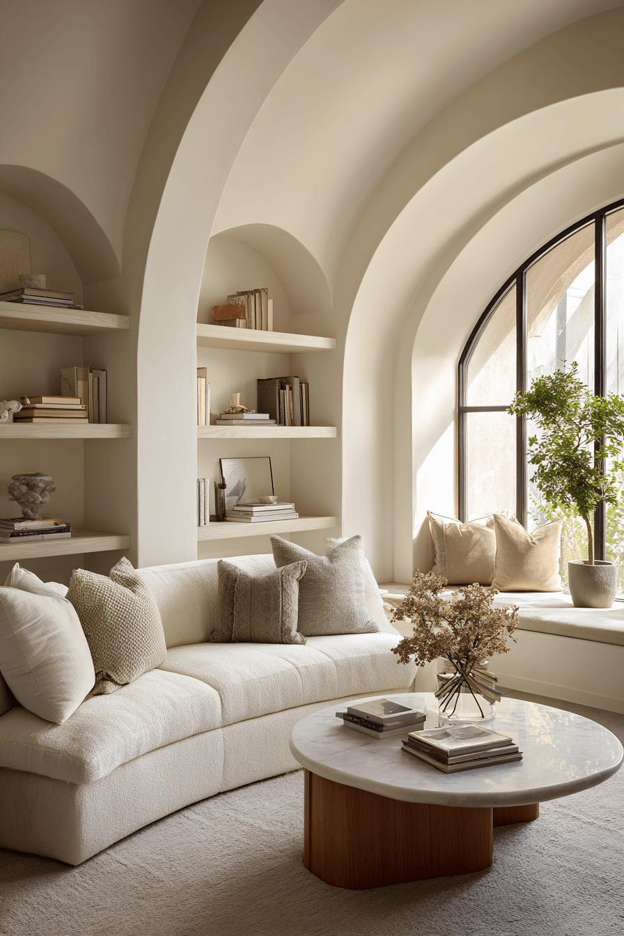 Curved architectural forms soften sharp corners and make spaces feel more fluid. Arched doorways, rounded islands, and curved sofas instantly create movement. This is one of the standout features in 2026 home design trends as design shifts toward more organic shapes. The curves make homes feel welcoming and visually dynamic. It’s modern, but with a human touch. Click to see how curves can reshape your space.