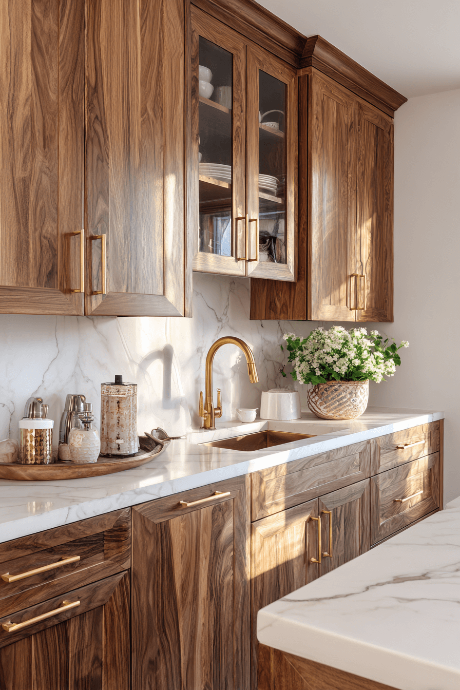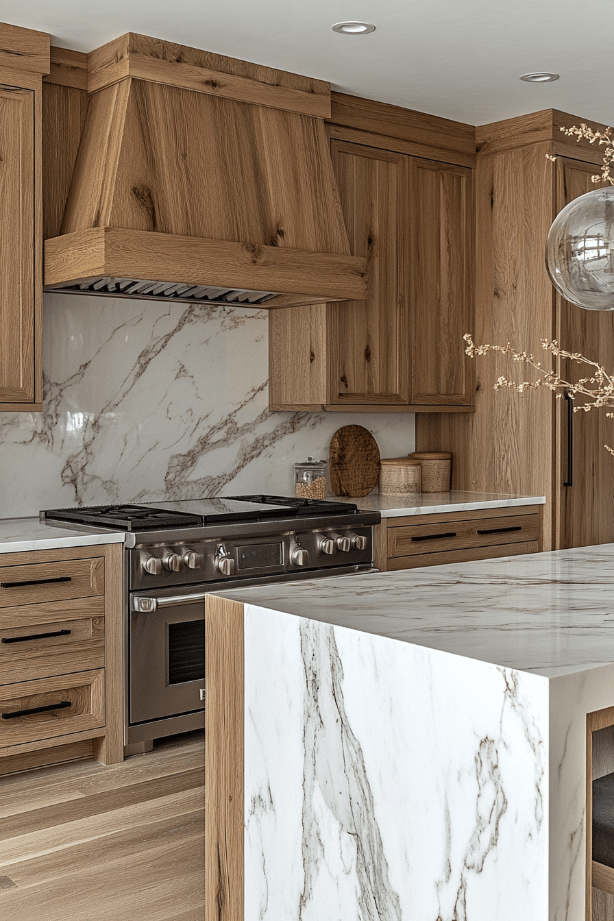 The organic beauty of hickory kitchen cabinets pairs elegantly with cool marble countertops. The contrast between the warm, rustic grain and smooth stone is visually stunning. This combination suits both classic and contemporary kitchen styles. Use subtle lighting to highlight the surface textures. It’s a refined pairing that feels effortlessly luxurious. Tap to see this timeless duo in action!