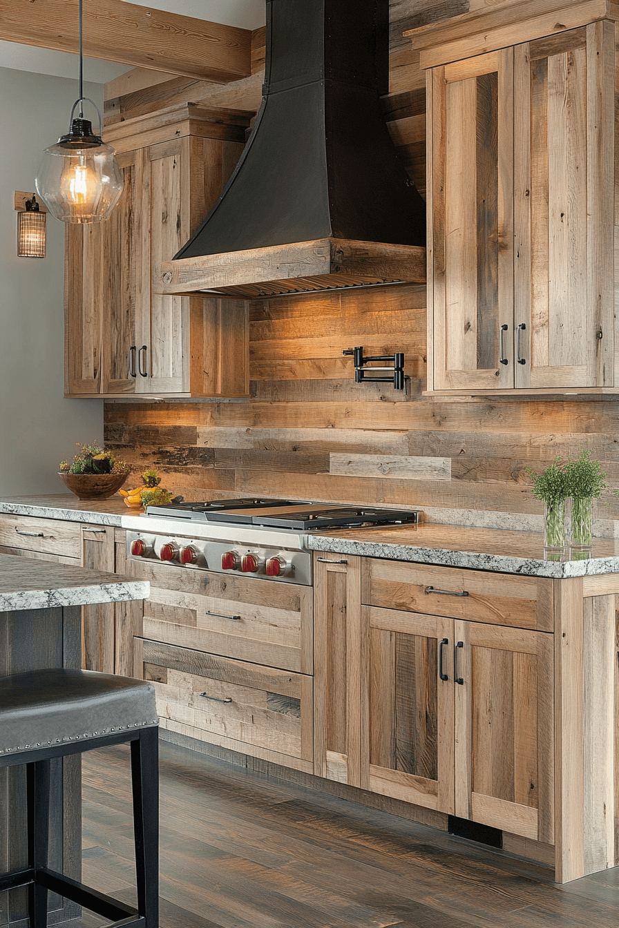 Distressed hickory kitchen cabinets bring time-worn texture and vintage soul to your space. The added character enhances hickory’s natural grain and knots. This look is ideal for country kitchens, cottages, or anyone who loves aged patina. Pair with antique hardware or vintage-inspired lighting. The cabinets look like they’ve been loved for generations. Tap to add nostalgic charm to your kitchen!