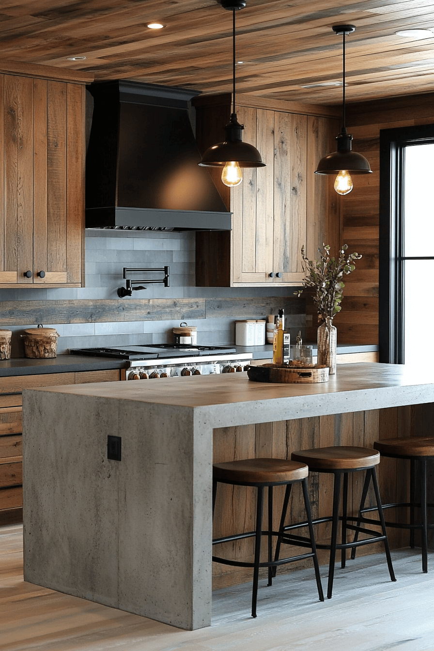Rustic modern hickory kitchen cabinets fuse organic textures with streamlined design. The rich patterns in hickory wood contrast perfectly with clean-lined hardware and minimalist layouts. This look balances warmth and structure, ideal for those who want rustic charm without clutter. Pair it with concrete counters, black fixtures, or sleek lighting. The result feels cozy yet current. Tap to explore this balanced beauty of rustic and modern!