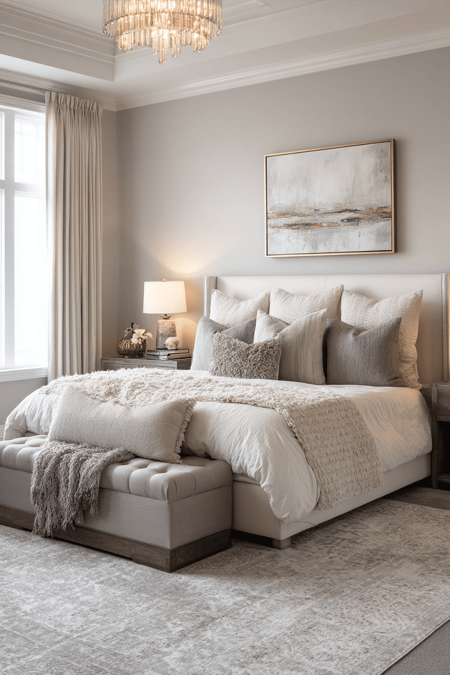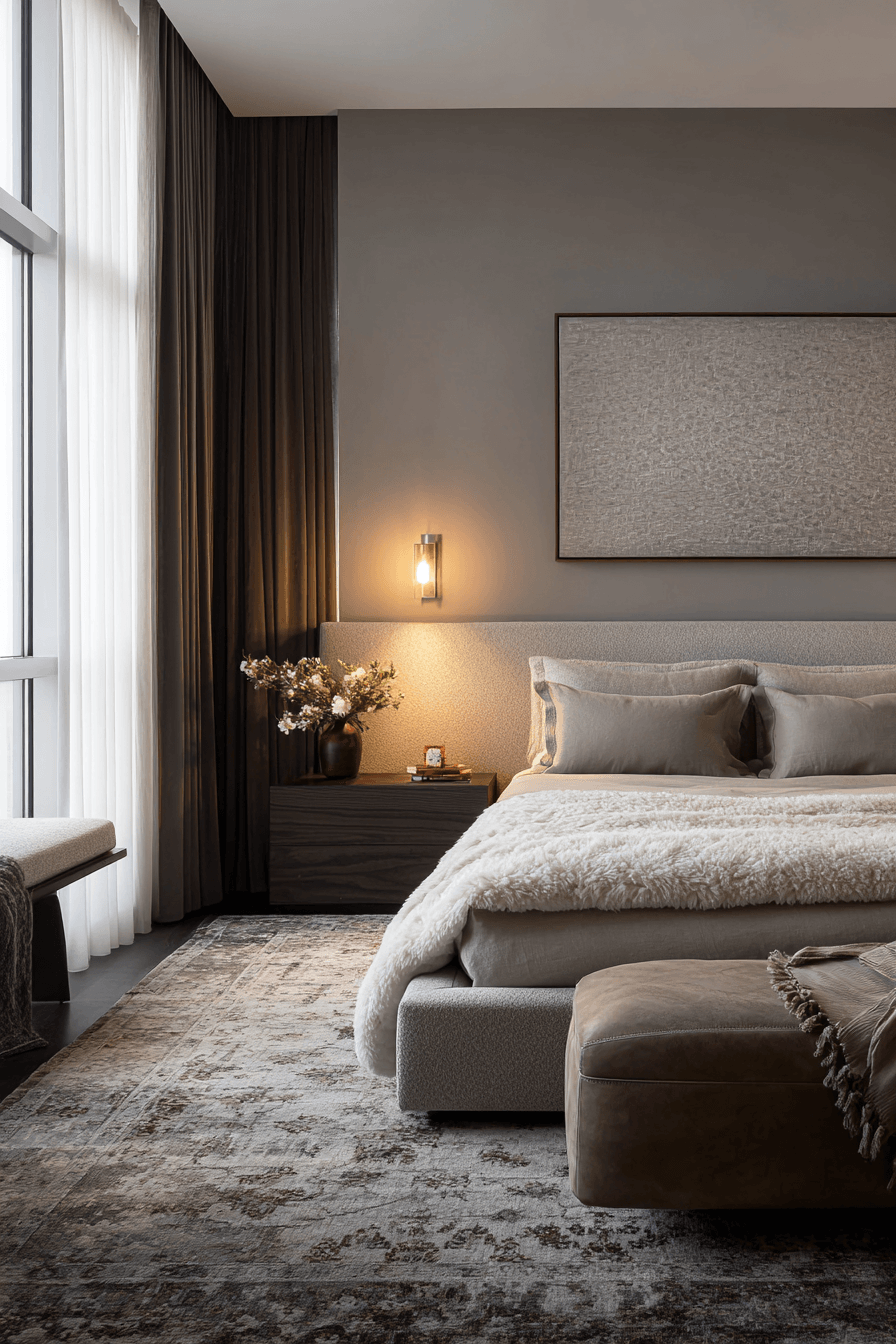A layered texture bedroom brings depth, warmth, and richness to luxurious bedrooms through a carefully curated mix of materials. Plush area rugs, soft linens, velvet cushions, and woven accents work together to create a multi-dimensional look. The combination of textures adds visual interest while maintaining a cohesive and balanced design. Neutral tones help unify the elements, keeping the space sophisticated rather than busy. Subtle variations in fabric and finish create a tactile experience that feels both cozy and refined. The overall atmosphere is inviting, stylish, and deeply comforting. Click to explore texture layering ideas!