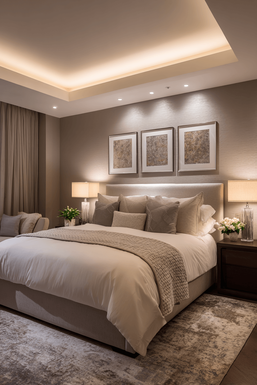 Neutral toned elegance defines luxurious bedrooms with a soft, cohesive palette that feels both timeless and refined. Shades of beige, cream, taupe, and grey blend seamlessly to create a calming foundation. Subtle variations in texture—like woven fabrics, plush rugs, and smooth finishes—add depth without disrupting the harmony. Layered bedding and understated decor enhance the sense of quiet sophistication. The simplicity of the color scheme allows high-quality materials to truly stand out. The result is a balanced, polished space that feels effortlessly stylish. Explore this elegant approach!