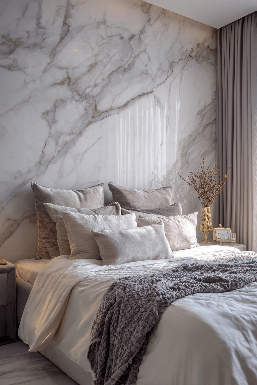 6. Marble Accent Bedroom