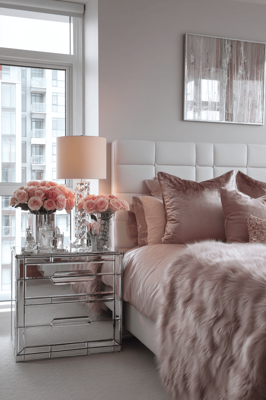 A luxury apartment bedroom maximizes space while maintaining the feel of luxurious bedrooms through smart layouts and sleek, modern design. Neutral tones and reflective finishes help open up the room, making it feel larger and more airy. Compact furniture with clean lines offers both functionality and style without overcrowding the space. Built-in storage and multi-functional pieces keep everything organized and visually streamlined. Soft textiles, layered lighting, and subtle decor add warmth and comfort to the polished setting. The result is a refined, efficient space that still feels indulgent and high-end. Tap to explore apartment luxury!