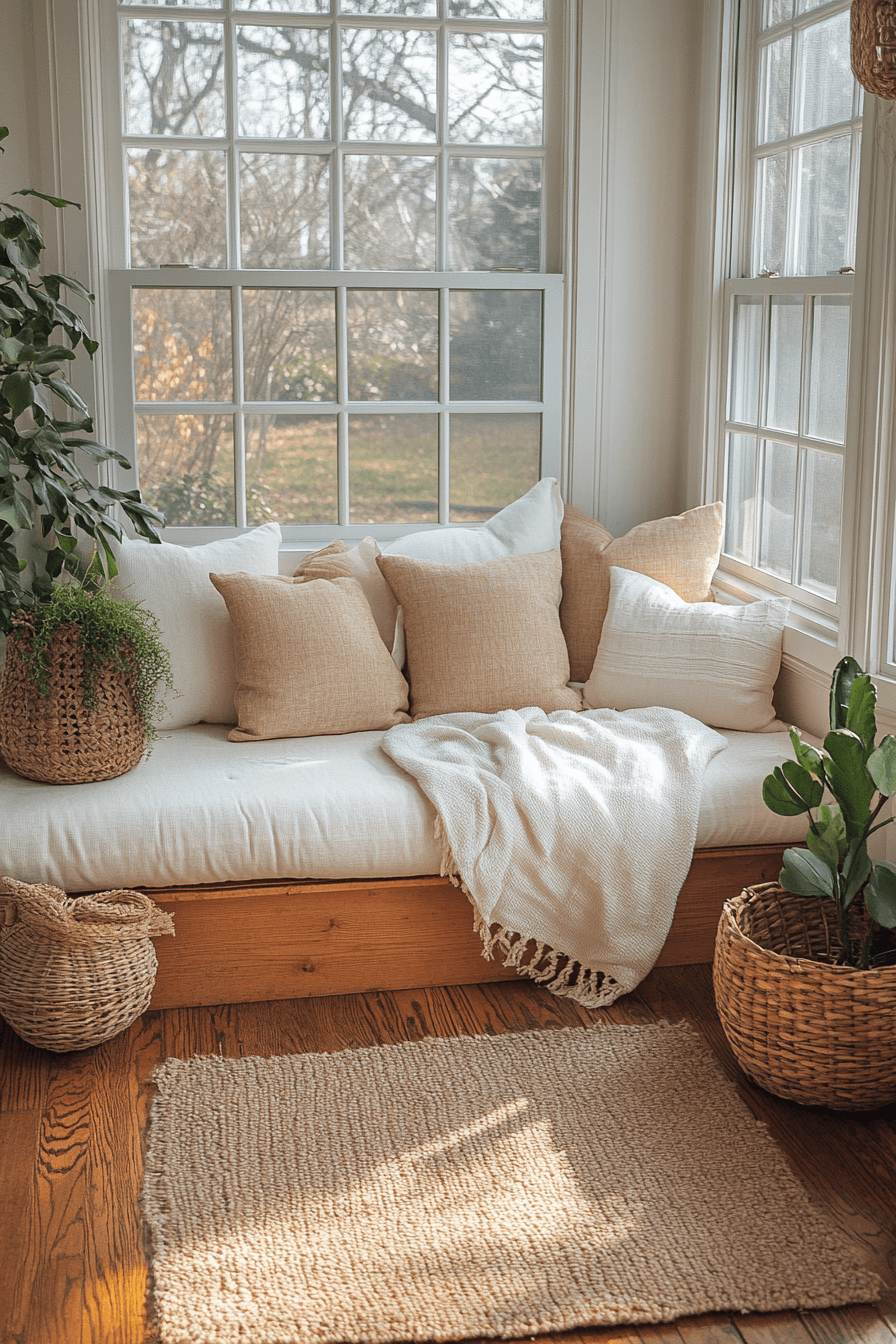 This cozy corner uses light and texture to create a warm, welcoming environment that feels both stylish and comfortable. Simple decor keeps the space uncluttered while allowing natural light to highlight every detail. Sunlight enhances materials like wood, fabric, and woven accents, bringing the room to life. Small sunroom ideas like this focus on comfort while maintaining brightness and openness. Adding a soft throw or a few decorative elements can elevate the cozy factor without overwhelming the space. The result is a soothing, well-balanced retreat. Tap to explore this cozy corner.