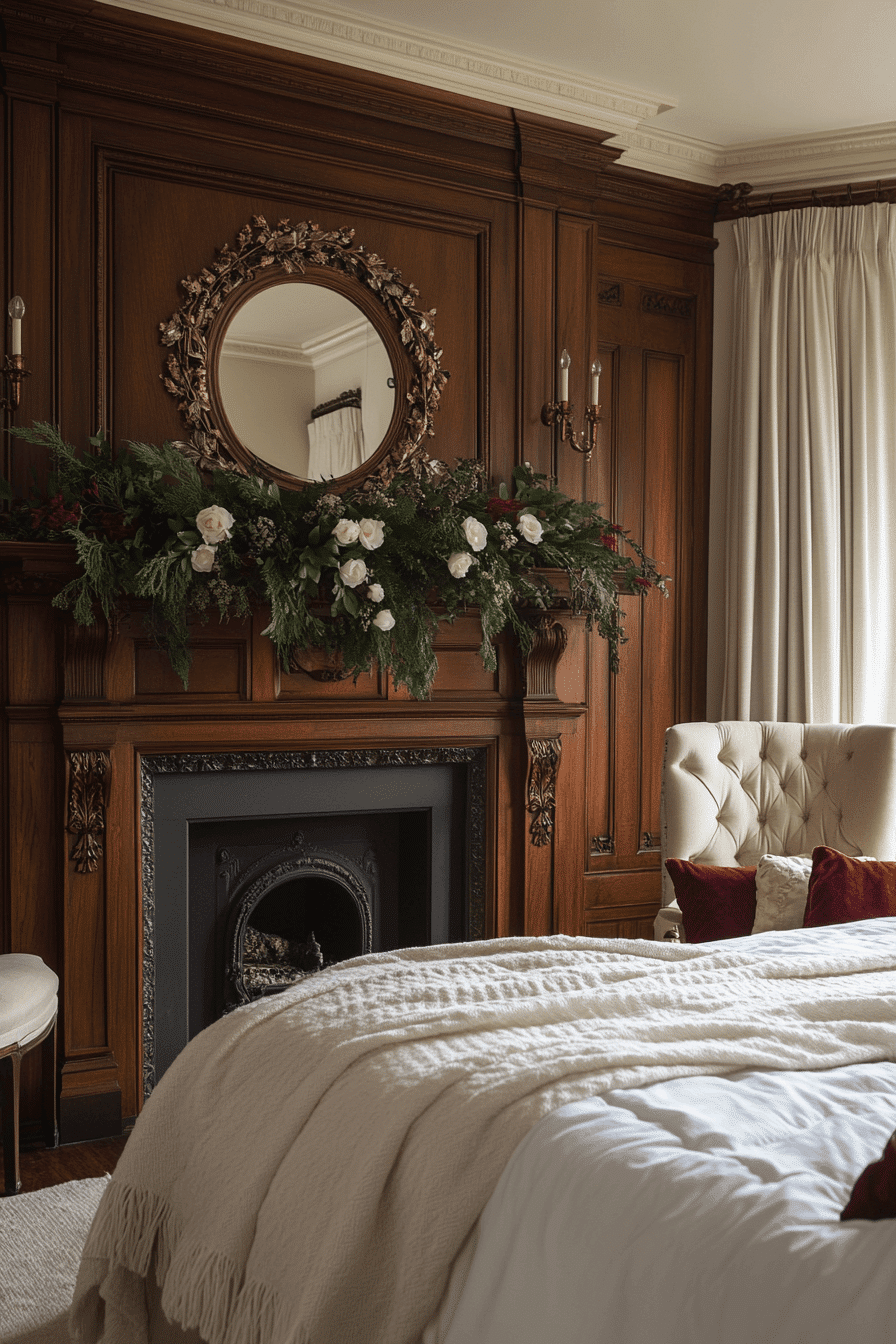 Carved mantel bedrooms bring a cozy, stately feeling by incorporating fireplace features into the sleeping space. With intricate woodwork, marble details, and classic silhouettes, these mantels serve as a unique architectural anchor. They pair beautifully with candelabras, framed oil paintings, and seasonal decor. Even if nonfunctional, they add historical character and warmth. Their presence speaks to old-world luxury and domestic charm. Click to explore mantel ideas for your antique bedroom transformation!