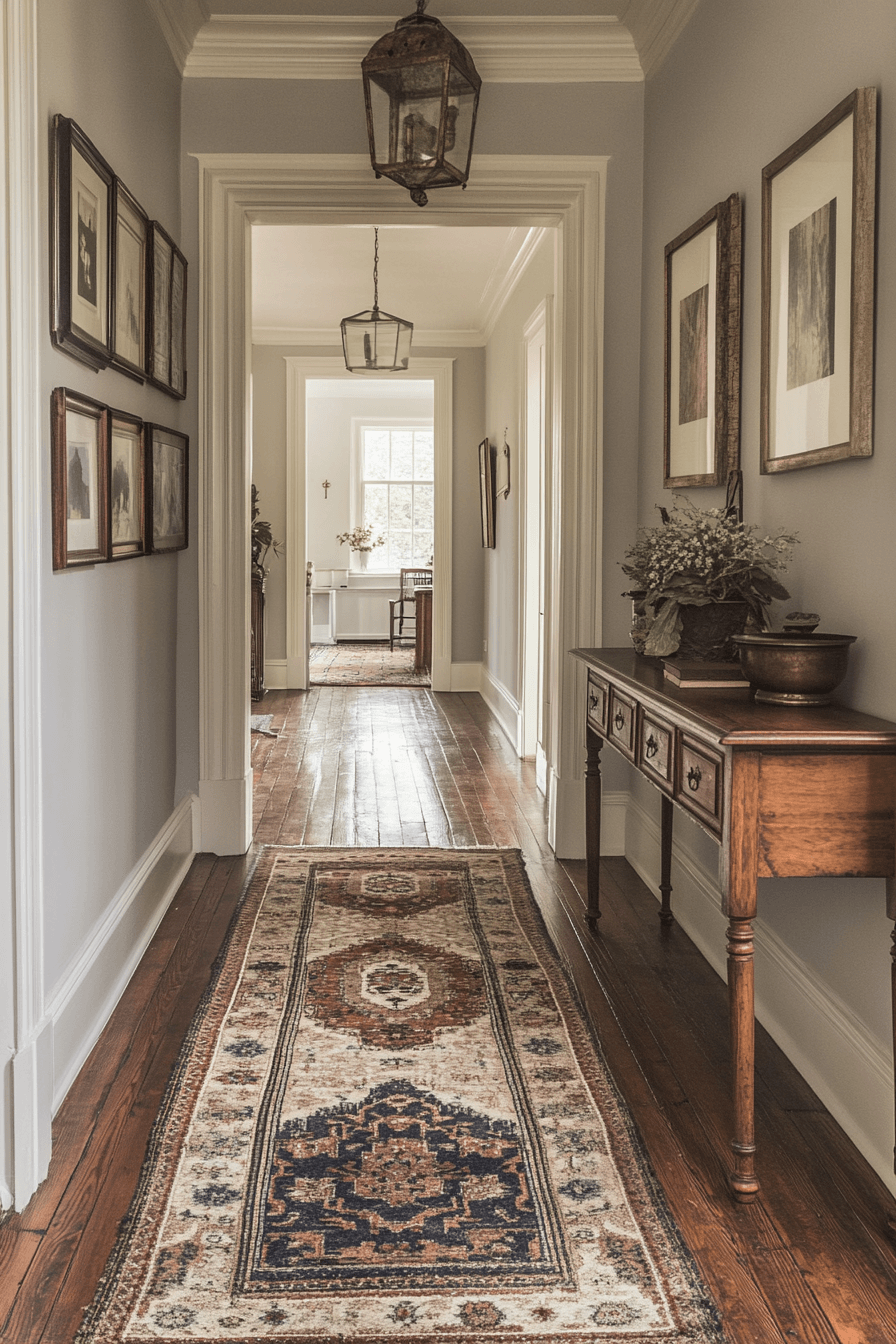 A heritage hallway runner adds warmth and personality, making it a beloved choice among antique farmhouse decor ideas. Its faded patterns and soft fibers complement the natural tones of rustic flooring. Every step feels like a walk through history. These runners combine practicality with beauty for a welcoming touch.