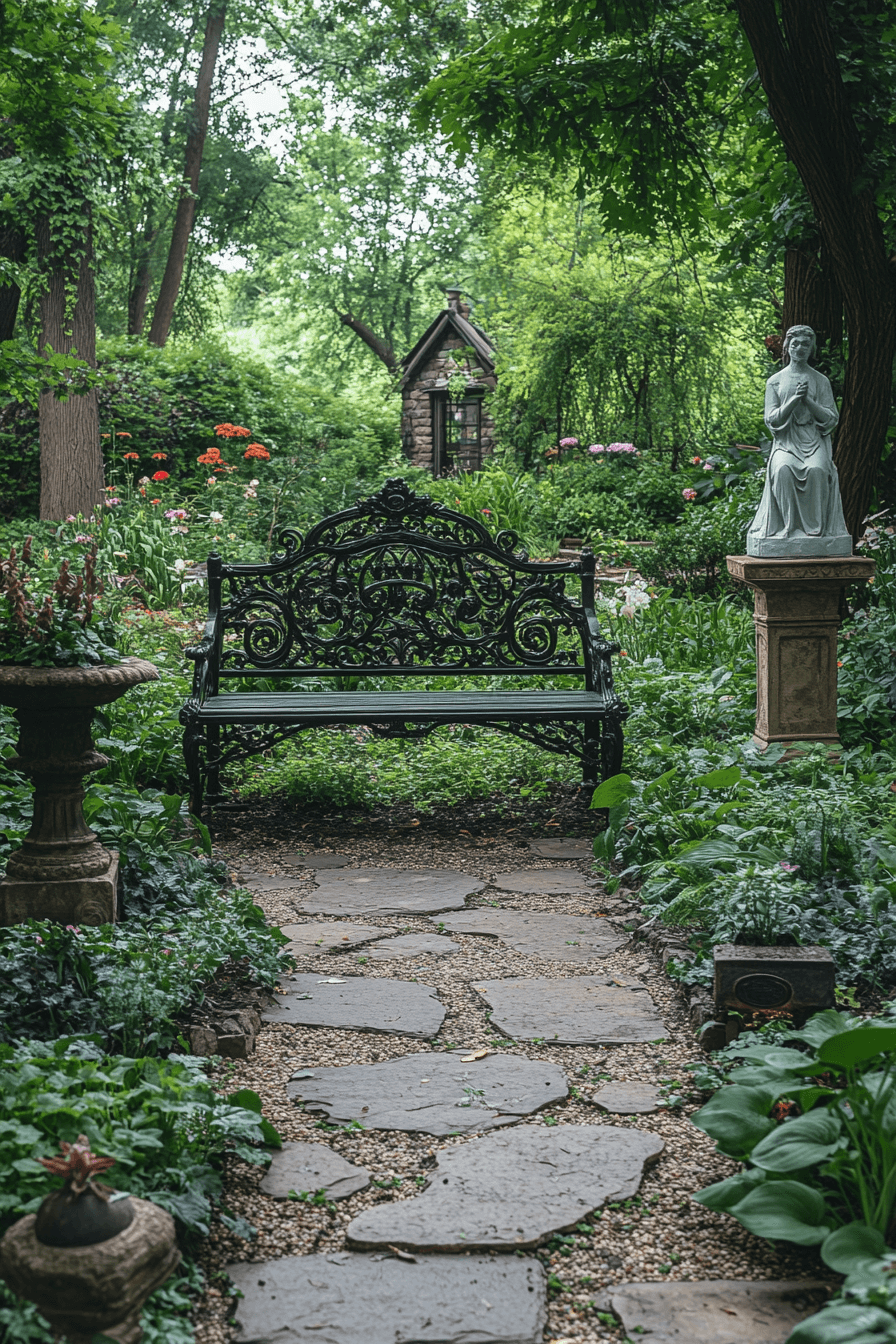 Bringing traditional elements outdoors is one of the most timeless antique farmhouse decor ideas for your garden. Wrought iron benches, weathered statues, and old watering cans add nostalgic beauty to your yard. These accents tell a story of heritage and countryside charm. Together, they create a seamless flow between home and nature.
