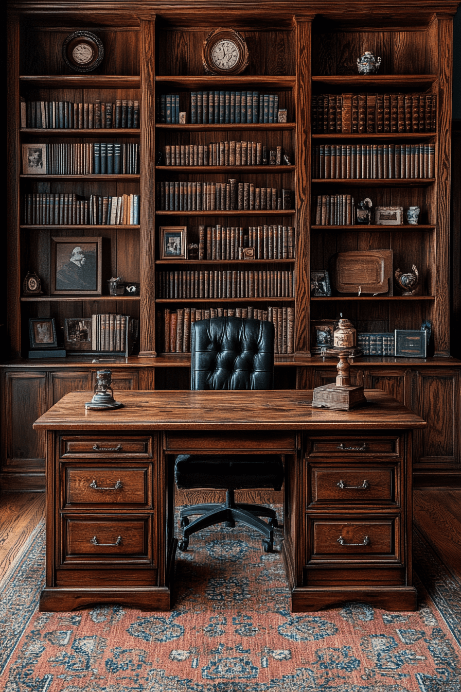 A vintage desk is one of the most inspiring antique farmhouse decor ideas for a creative home office. The sturdy wood and detailed craftsmanship bring timeless appeal to your workspace. Every drawer and surface holds a story of artistry and tradition. It pairs effortlessly with both modern and rustic accessories.