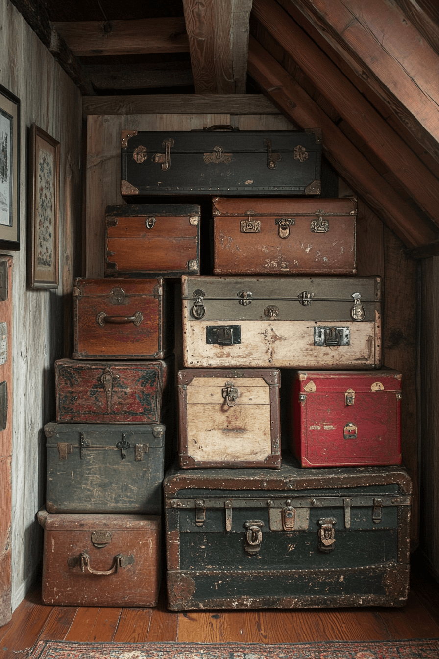 Unearthing attic treasures is one of the most rewarding antique farmhouse decor ideas for adding soul to your home. Vintage trunks, suitcases, or chests can be repurposed into stylish storage or accent pieces. Each one carries a story, connecting your home to the past. Their imperfections make them even more charming.
