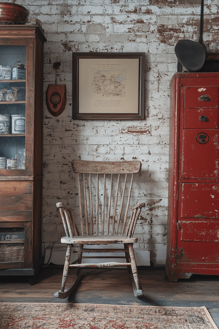Transforming your basement with reclaimed finds is one of the smartest antique farmhouse decor ideas for cozy character. An old rocking chair or repurposed table adds comfort and authenticity. The warm, aged textures make the space feel inviting. It’s a perfect mix of practicality and charm.
