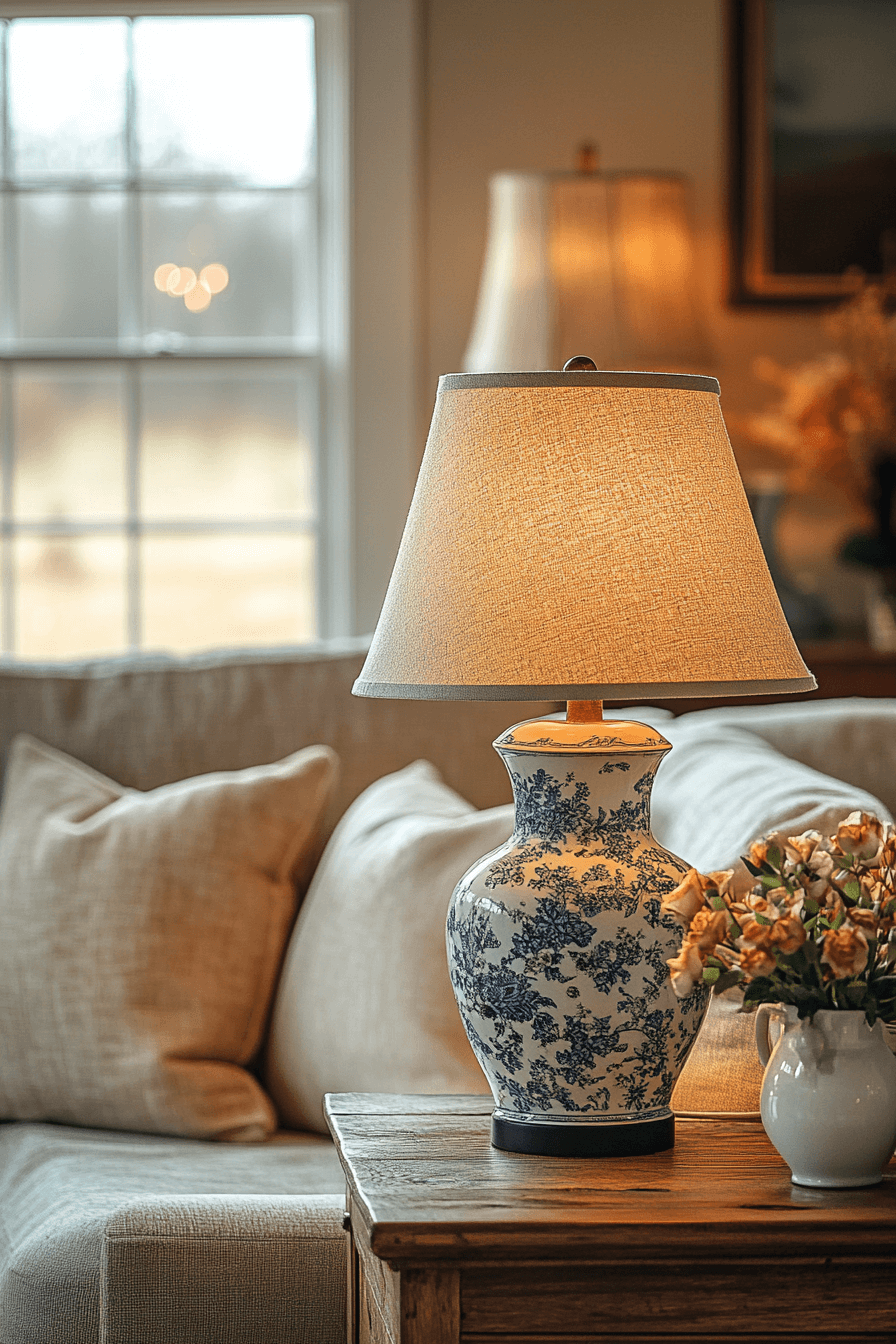 An heirloom lamp is one of the most elegant antique farmhouse decor ideas to illuminate your living room with charm. The soft glow from a vintage base adds warmth while showcasing intricate details and historical craftsmanship. These lamps blend nostalgia and sophistication effortlessly, creating a cozy yet elevated vibe. Every flicker of light tells a story of timeless beauty.