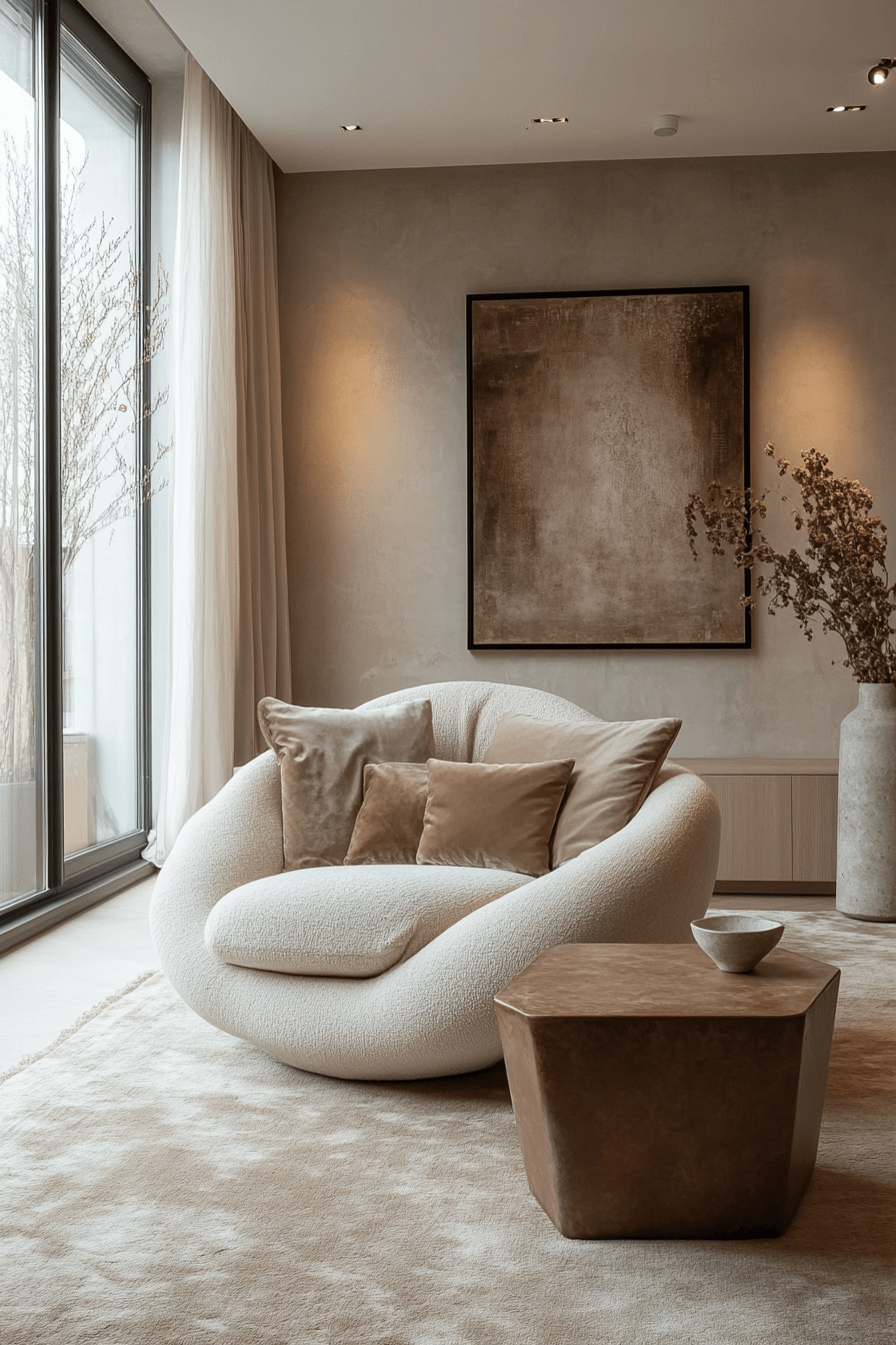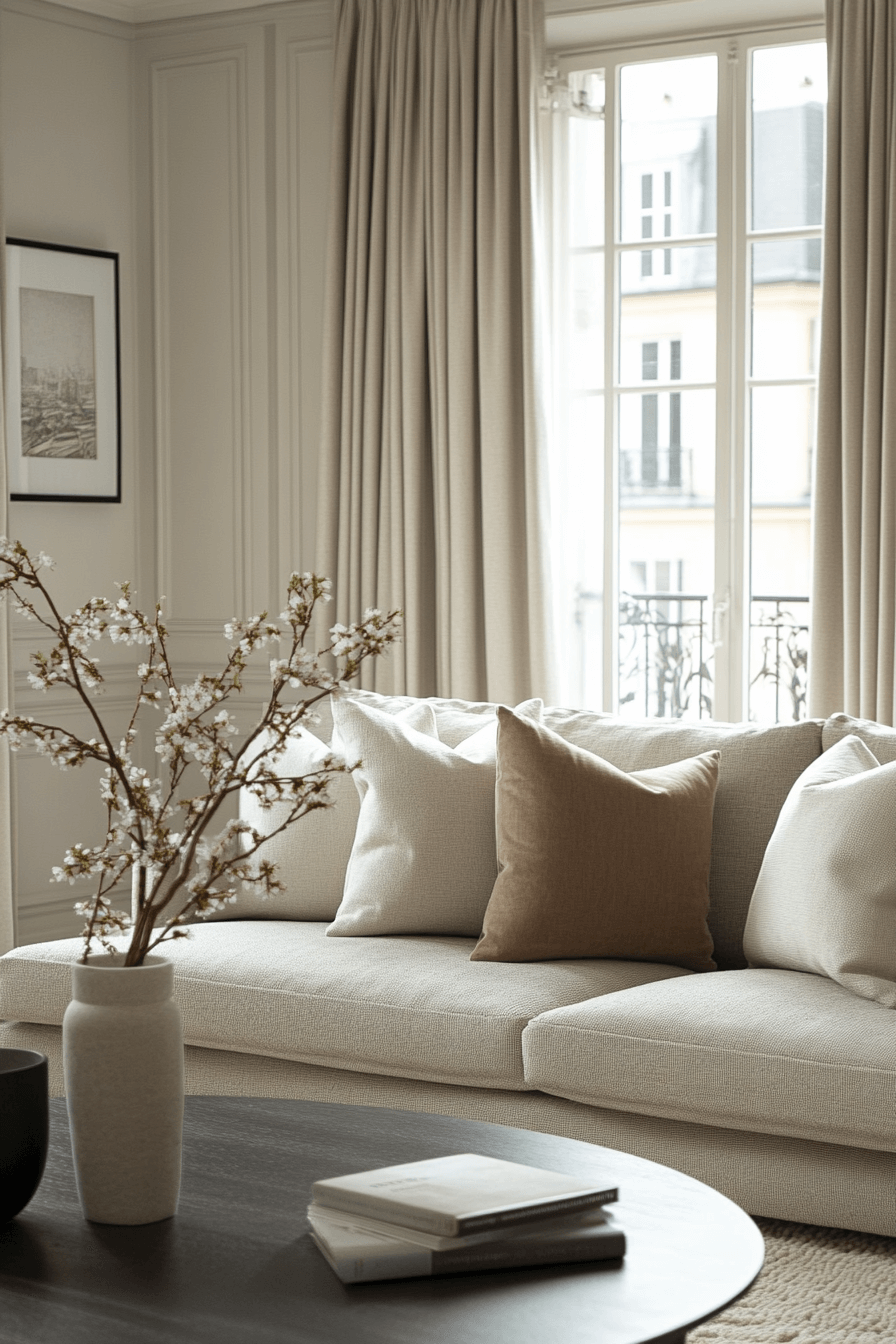 Ivory, tan, and gray pair with tactile materials for a quiet apartment aesthetic cozy look that’s understated yet elegant. Open layouts let the textures take center stage, while soft lighting keeps it warm. This style feels luxurious without being showy. Perfect for timeless interiors.