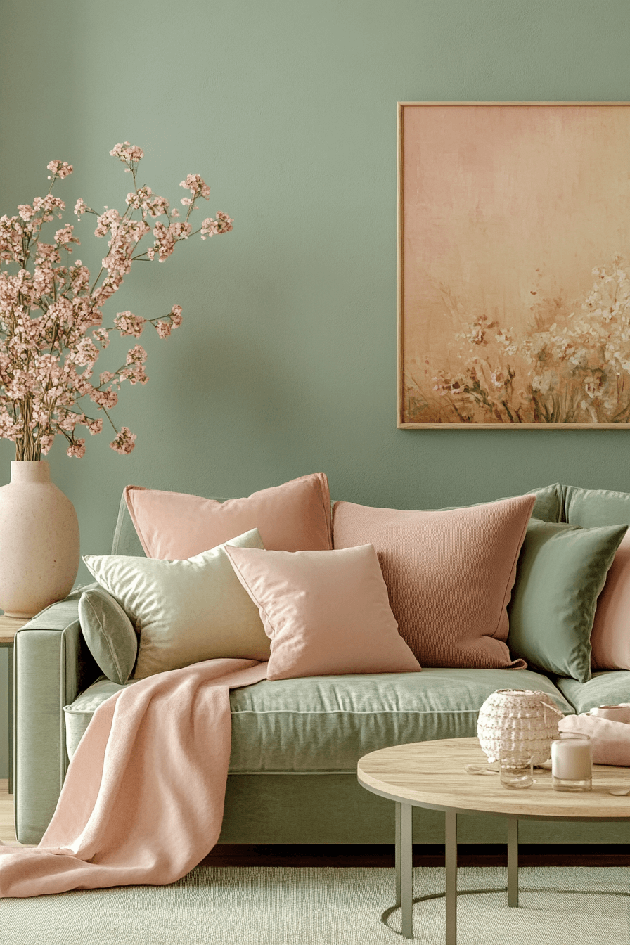 Soft lavender, mint, and peach create a playful yet calm apartment aesthetic cozy mood perfect for sparking joy in everyday living. Pair these shades with white furniture and cozy textiles for a light, airy balance that never feels overwhelming. Layer in soft rugs and patterned pillows for depth without losing the serene vibe. This palette works beautifully for both small studios and open-plan apartments.