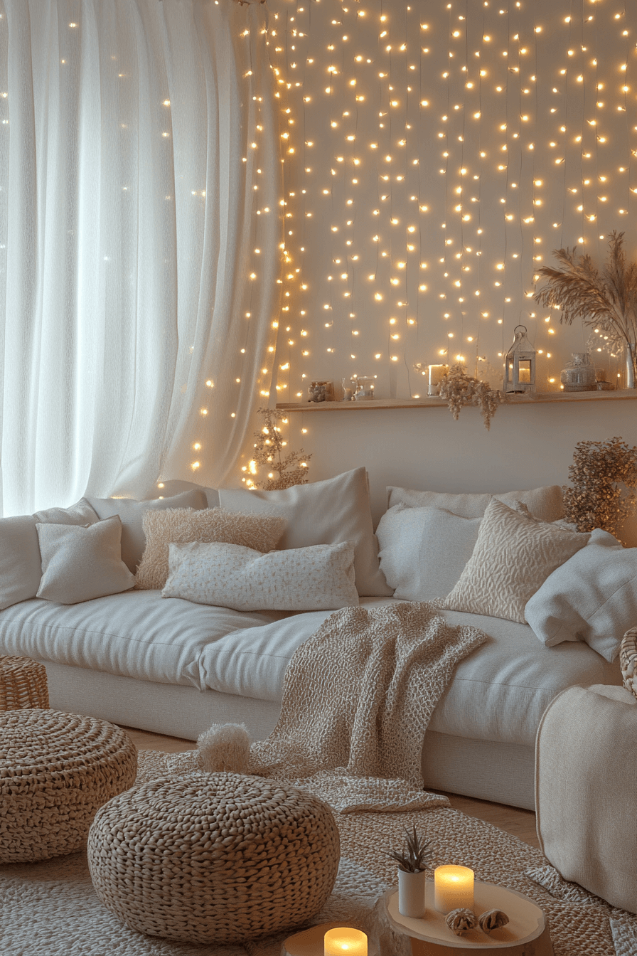 Layered lighting transforms your home into an apartment aesthetic cozy sanctuary you’ll want to linger in. Combine fairy lights, table lamps, and sconces for an instant sense of warmth and charm. This approach works equally well in bedrooms, living rooms, or even hallways. Great for night routines and slow, peaceful mornings.