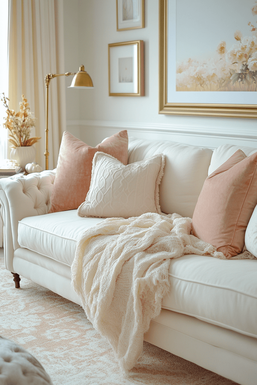 Soft blush meets ivory for a gentle apartment aesthetic cozy palette that feels balanced and soothing. Gold accents and plush fabrics add a hint of glamour without overwhelming the space. Ideal for bedrooms or reading corners that need a soft lift. Feminine yet refined for everyday living.