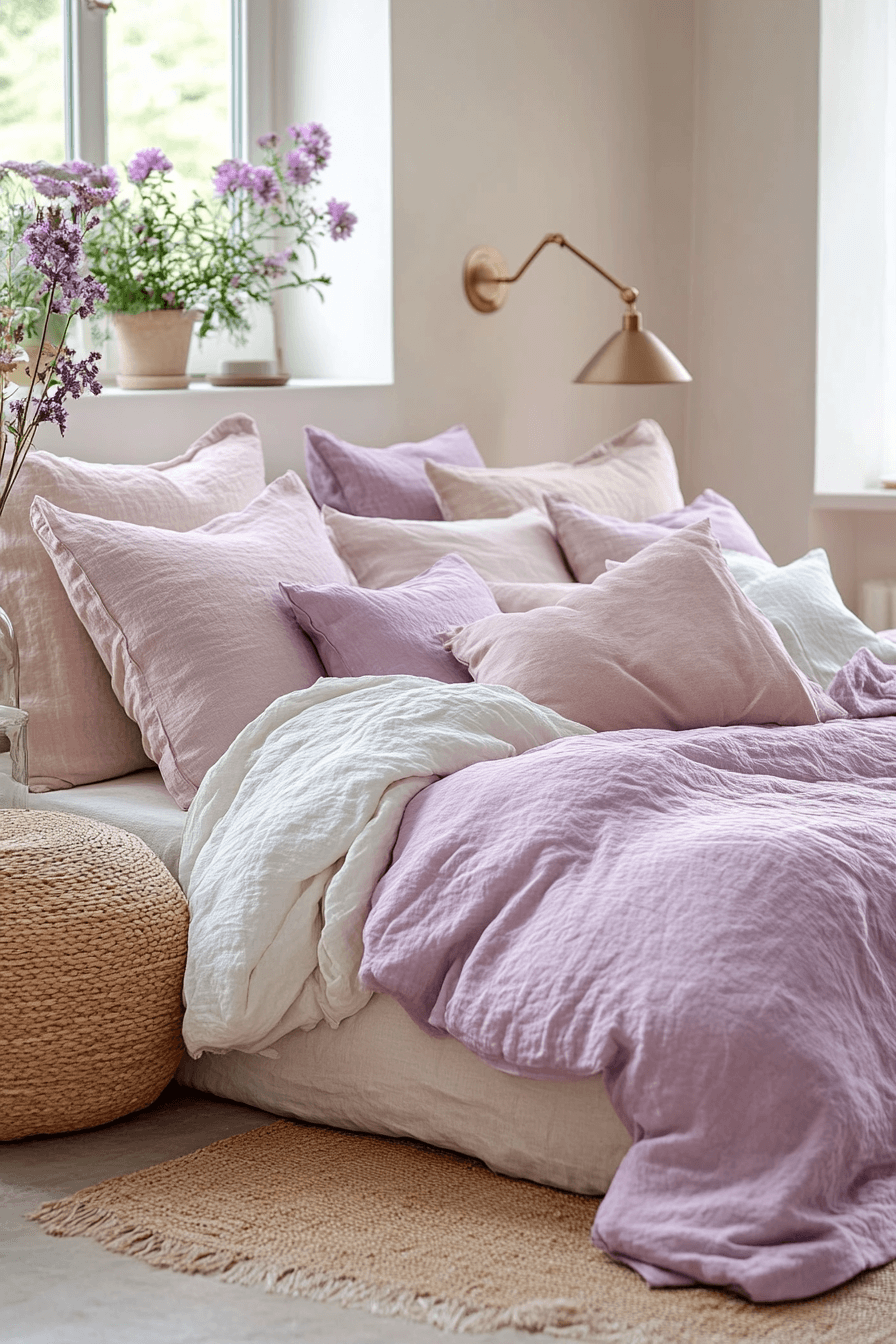 Lavender adds subtle charm to a bright apartment aesthetic cozy space, making it feel fresh and lightly romantic. Pair with minimal gold accents and soft textiles for a hint of elegance without losing its airy quality. This combination keeps rooms feeling open yet thoughtfully designed. Ideal for bedrooms or reading nooks that need a serene lift.