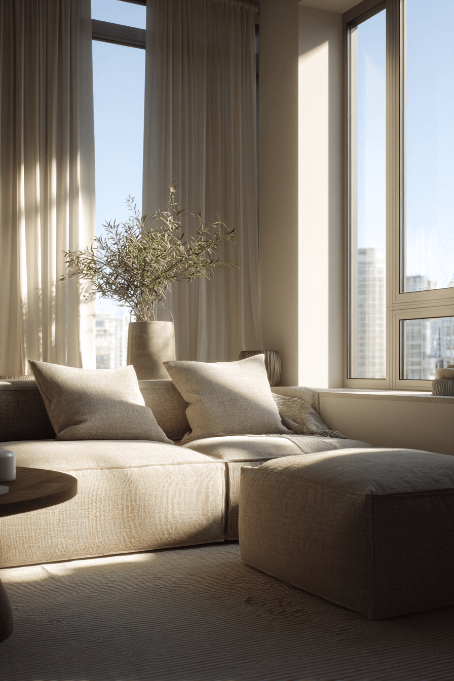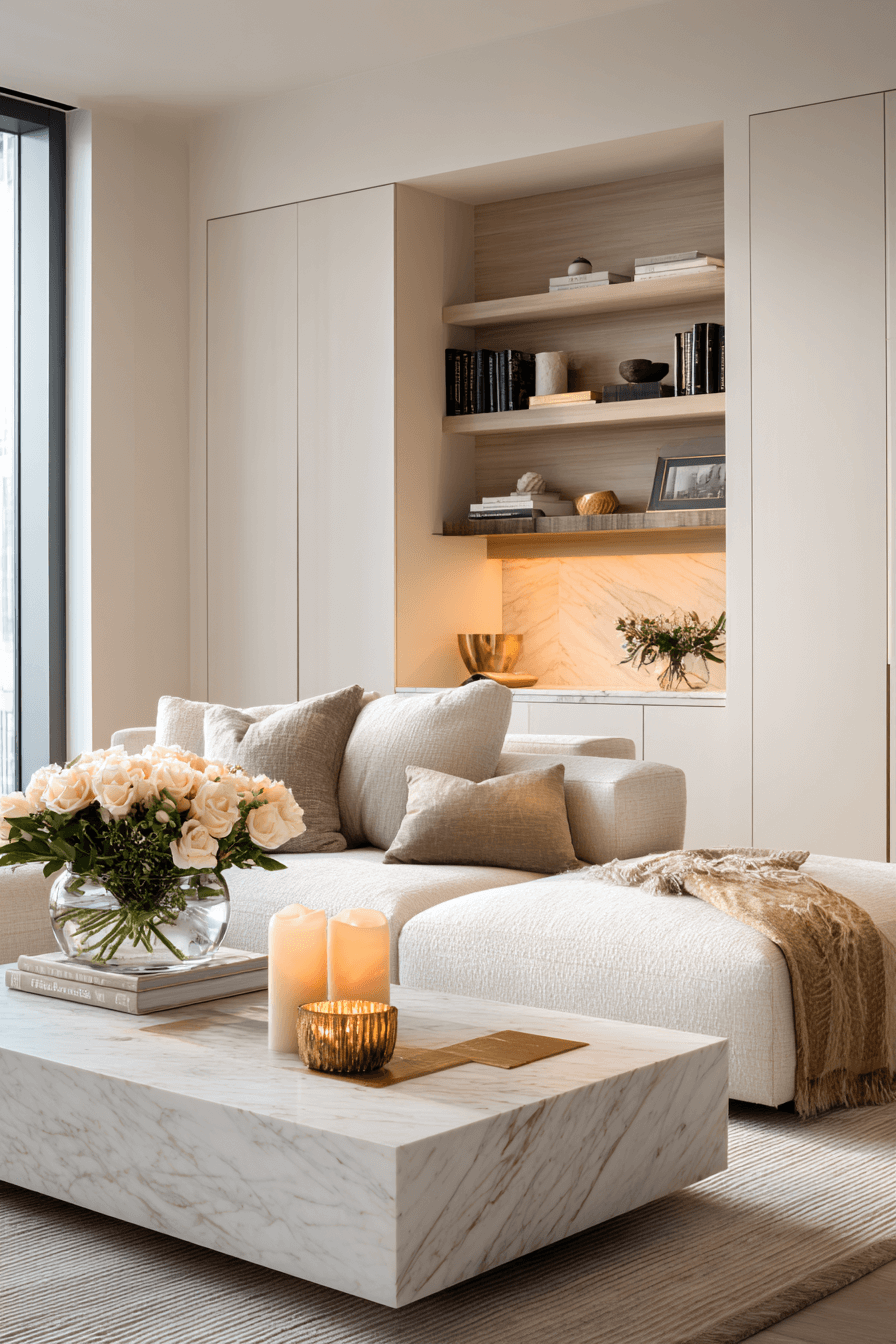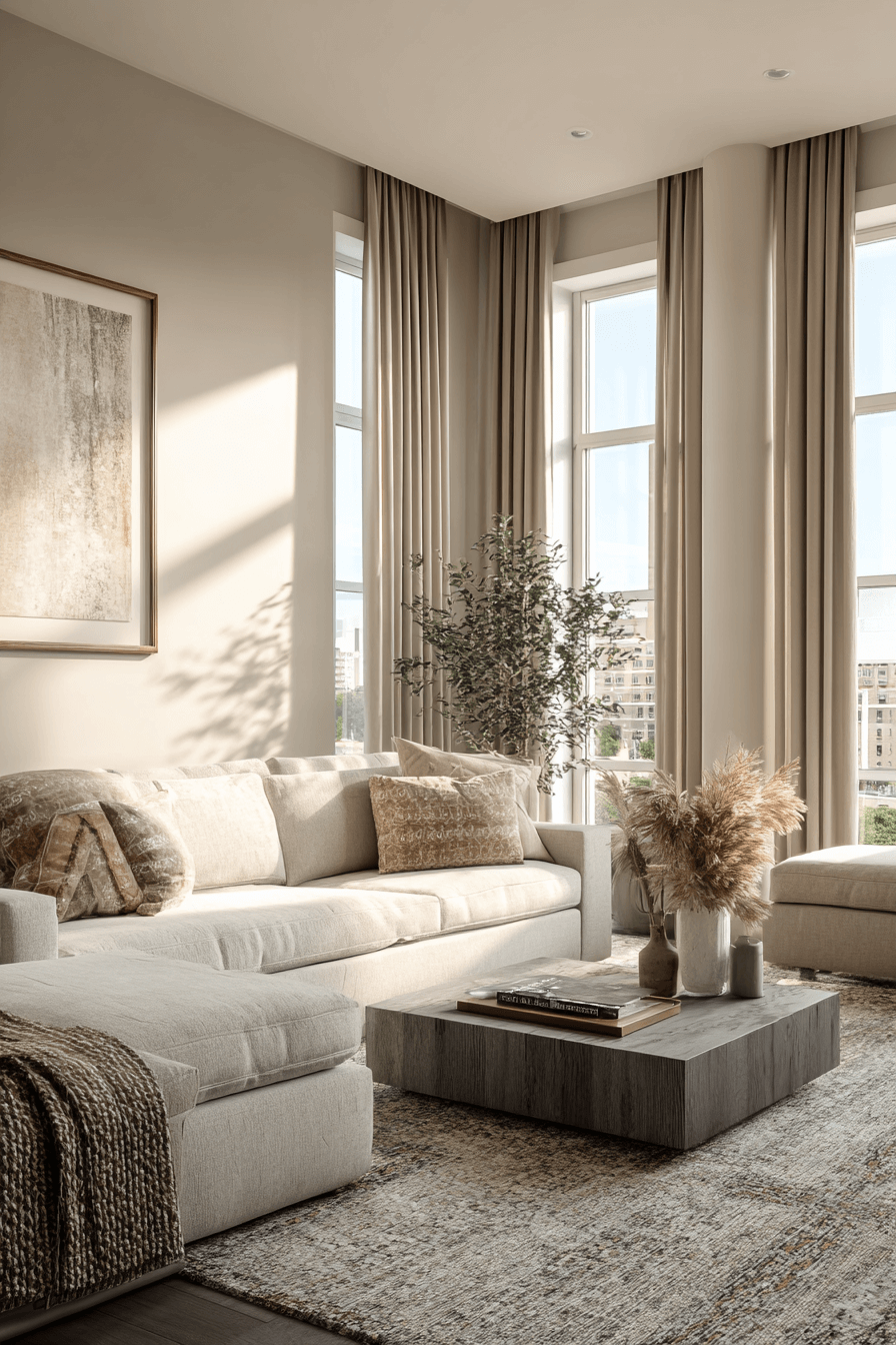 A textured neutral haven shows how depth can elevate apartment inspiration without loud color. Mixing fabrics like boucle, linen, and soft knits adds richness to a simple palette. The result feels layered and luxurious while still staying understated. This style works especially well in apartments where a calm, cohesive look makes the space feel larger. Subtle variations in tone keep the eye engaged. Tap to explore the power of texture in your home.