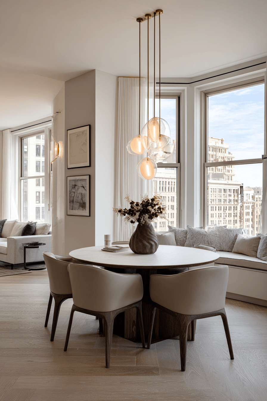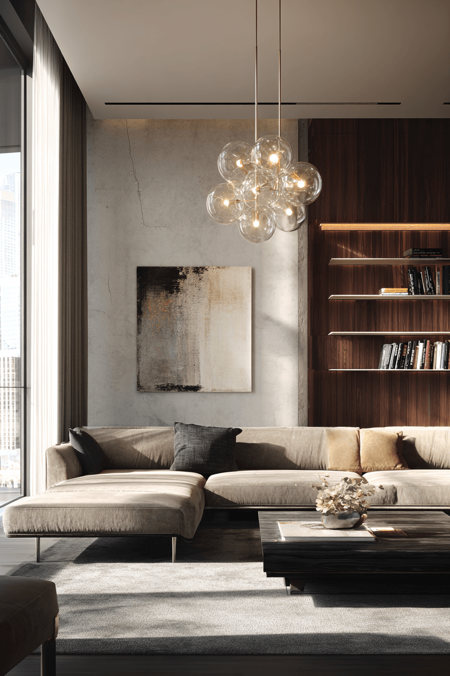 Statement lighting focus offers bold apartment inspiration without major structural changes. Sculptural pendants or sleek chandeliers anchor the room visually. Layered lighting adds depth and dimension. This works perfectly in apartments because lighting dramatically changes perception. Even a small room can feel grand with the right fixture. Tap to transform your space with lighting.