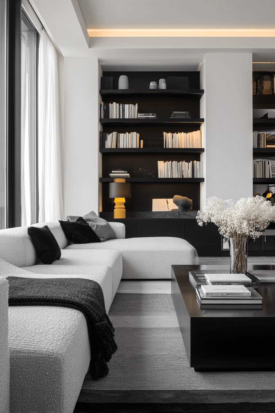 Modern monochrome flow is bold yet balanced, making it standout apartment inspiration. Sticking to a black-and-white palette creates instant contrast and drama. The key is softening the look with layered textiles and thoughtful lighting. This combination keeps the design from feeling stark or cold. It works incredibly well in apartments because it visually organizes the space and makes it feel structured. Tap to explore this striking monochrome approach.