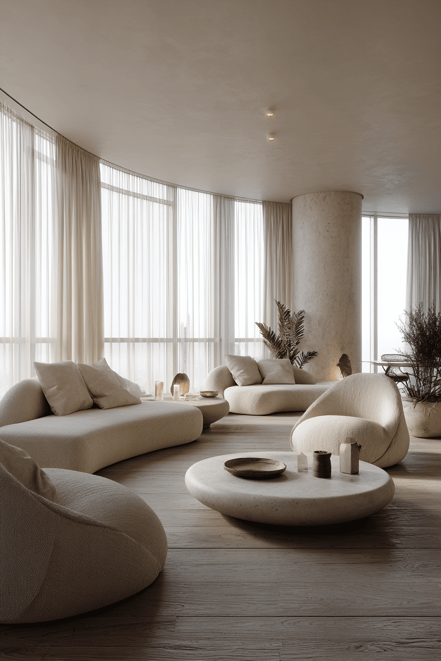 Sculpted furniture apartment style turns everyday layouts into eye-catching apartment inspiration. Curved sofas, rounded coffee tables, and statement chairs create movement within the room. These shapes soften sharp corners and make smaller spaces feel more fluid. Keeping the palette neutral allows the silhouettes to shine without overwhelming the space. It works beautifully in apartments because one standout piece can transform the entire room. Tap to discover furniture that makes a statement.