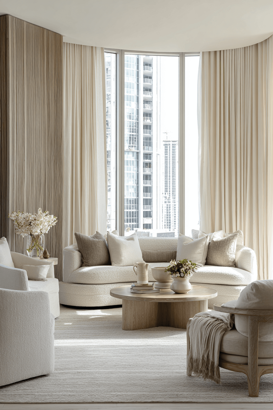 A textured neutral haven shows how depth can elevate apartment inspiration without loud color. Mixing fabrics like boucle, linen, and soft knits adds richness to a simple palette. The result feels layered and luxurious while still staying understated. This style works especially well in apartments where a calm, cohesive look makes the space feel larger. Subtle variations in tone keep the eye engaged. Tap to explore the power of texture in your home.