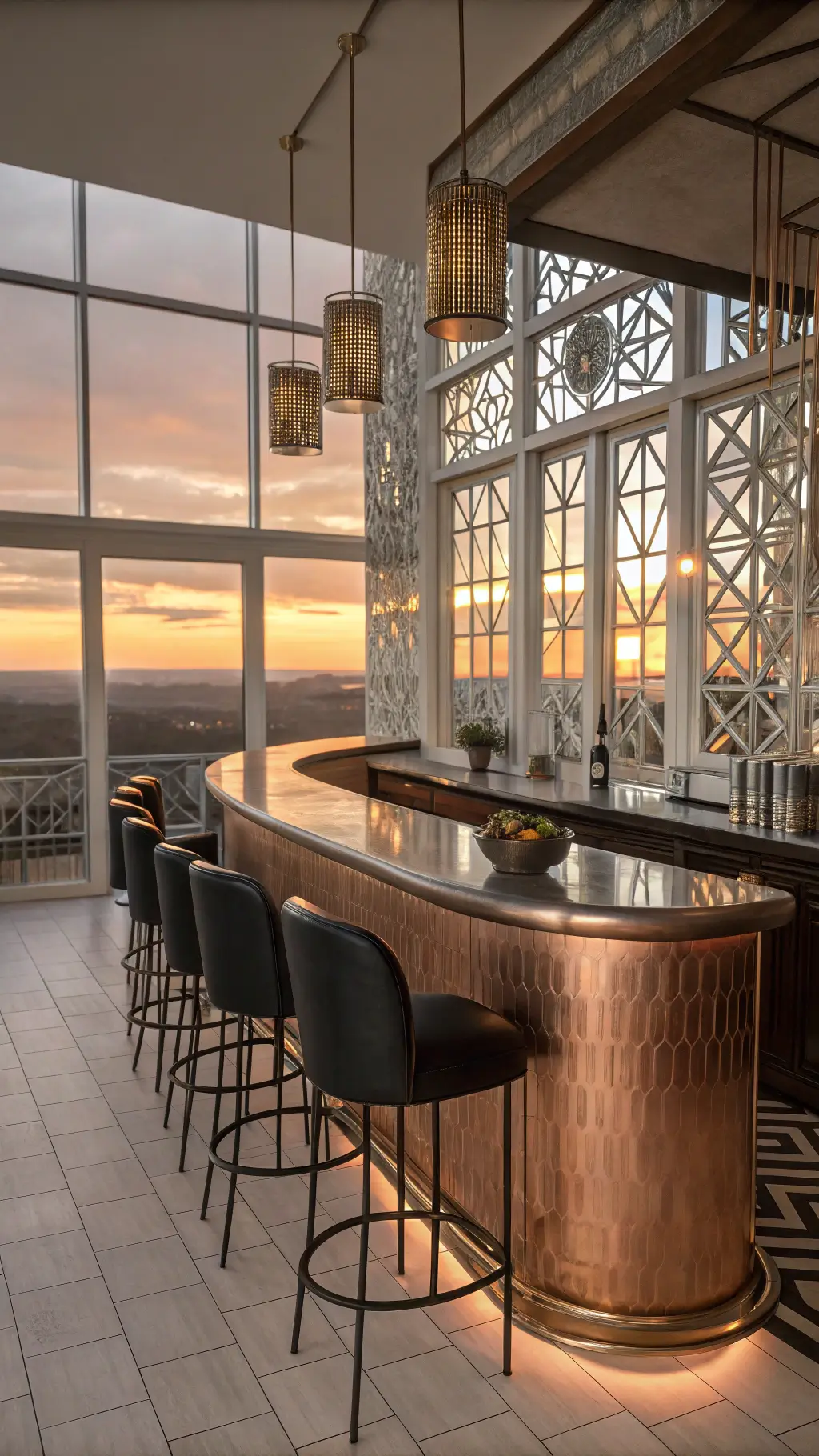 - Chrome pendant lights with geometric cuts