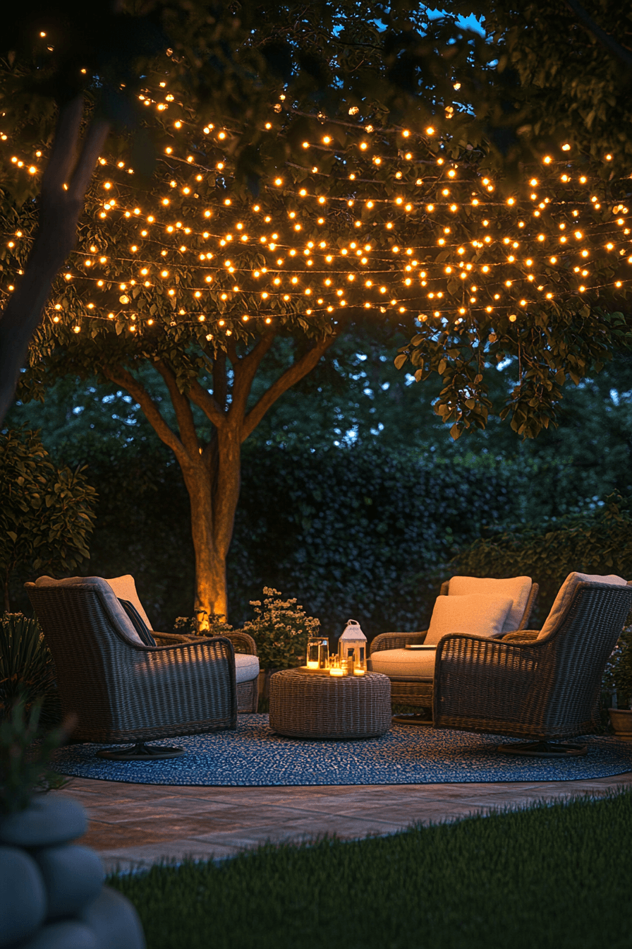 An ambient string light patio brings backyard decor to life with a soft, glowing atmosphere that instantly feels magical and inviting. Warm string lights draped overhead or across pergolas create depth, charm, and a cozy canopy effect. Simple furniture allows the lighting to remain the main feature, enhancing the mood without distraction. Natural textures like wood, wicker, and stone complement the warm glow beautifully. The layered lighting creates a relaxing environment perfect for evenings outdoors. Small accents like candles or lanterns can further elevate the ambiance. The space feels intimate, dreamy, and effortlessly stylish at any hour. Discover this dreamy setup today!