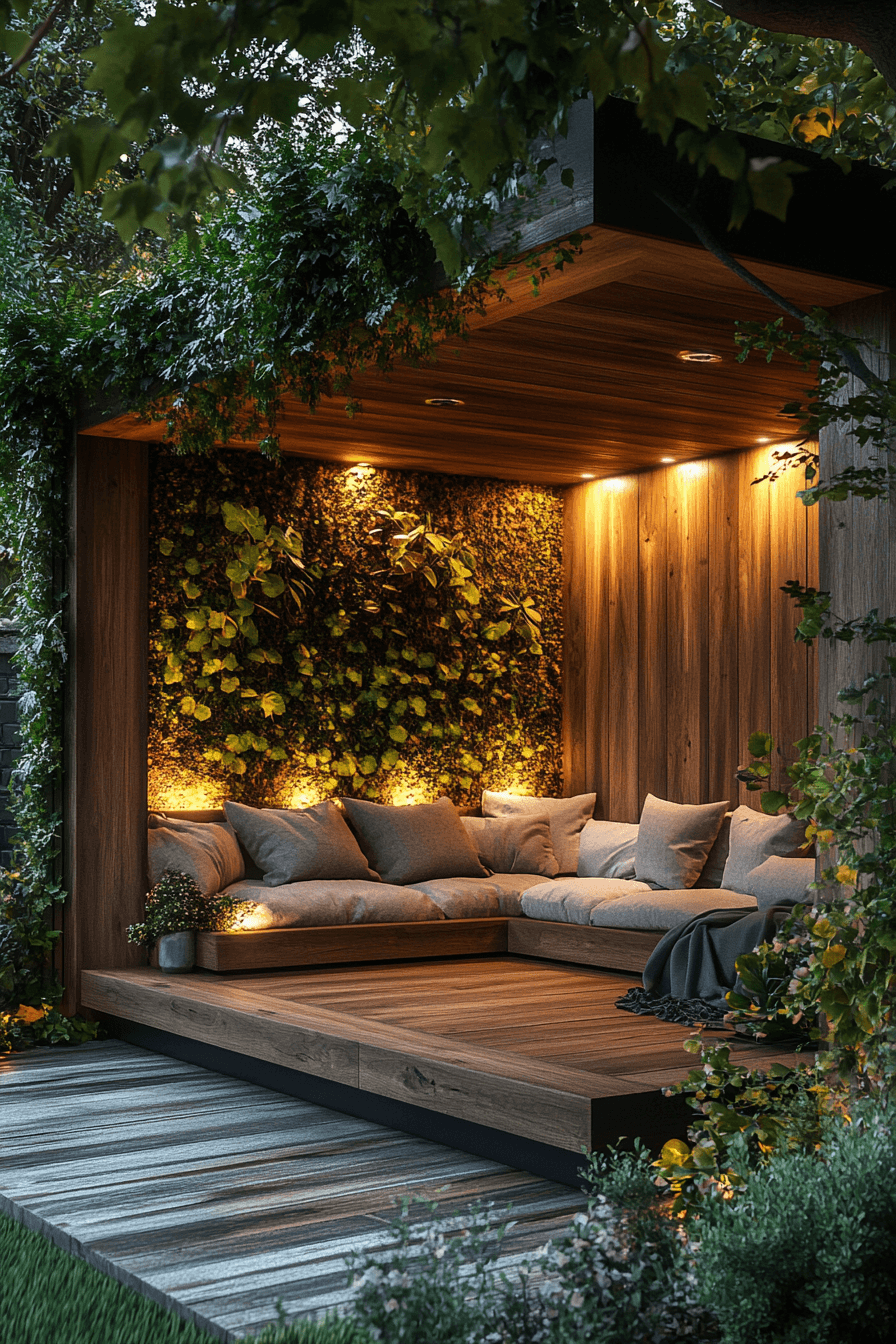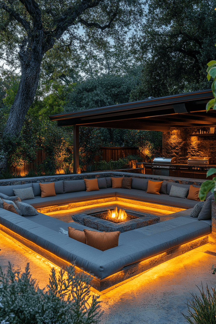 A sunken seating area adds depth and dimension to backyard decor with a cozy, built-in layout that feels both intimate and modern. Lowered seating naturally creates a defined gathering space that encourages connection and conversation. Soft cushions and upholstered seating balance comfort with structured design. Surrounding elements like fire pits or planters enhance the layered look. The recessed design adds visual interest and a unique architectural feature. Lighting around the edges creates a warm and inviting atmosphere. The result is a standout space that feels stylish, comfortable, and one-of-a-kind. Explore this standout design today!