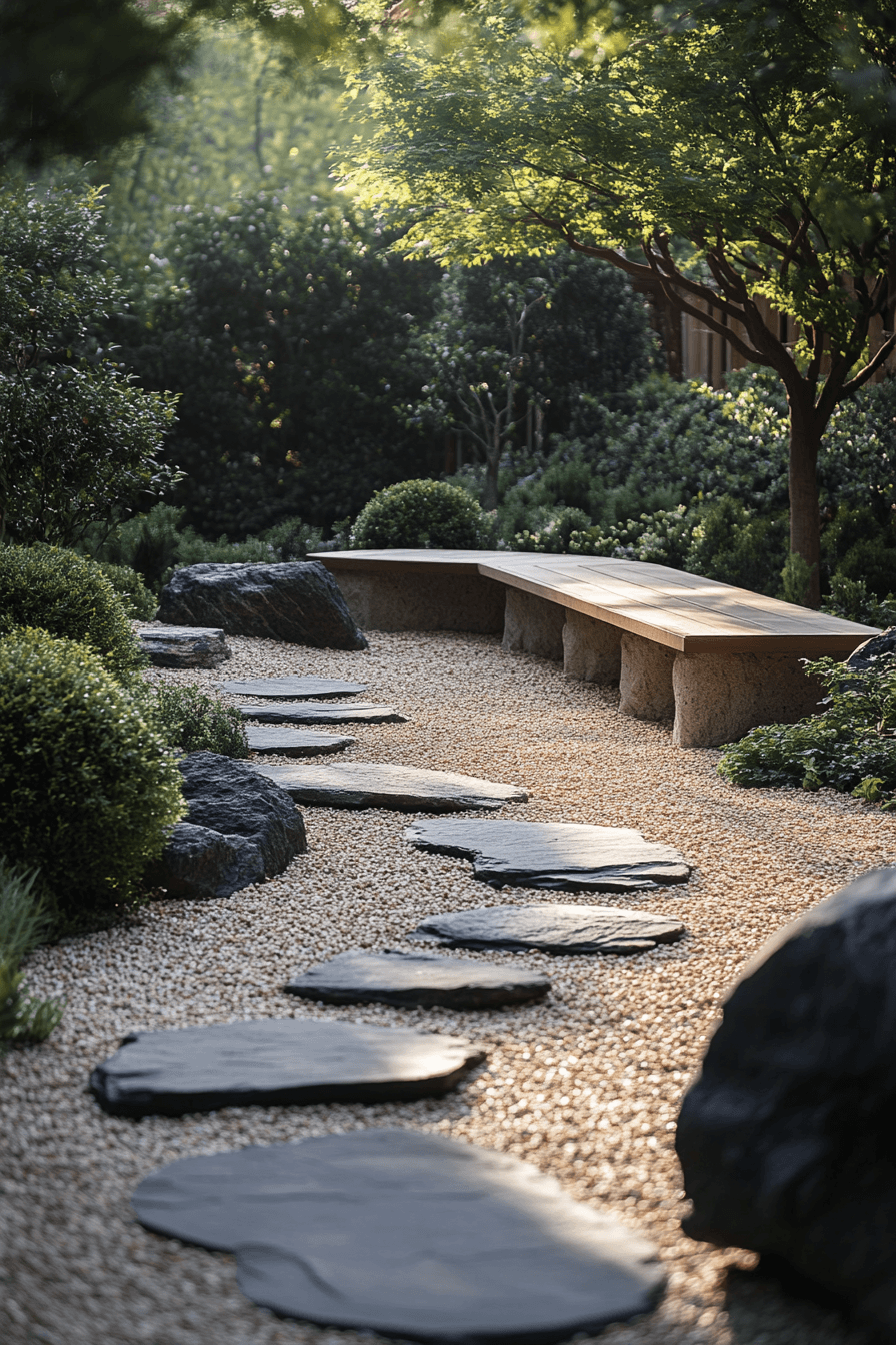A zen garden corner transforms backyard decor into a tranquil retreat with calming textures and a balanced, intentional design. Gravel, stone pathways, and minimal greenery create a peaceful visual flow that feels grounded and serene. Low seating or simple benches encourage relaxation and mindfulness. Neutral tones and natural materials keep the space cohesive and soothing. Subtle elements like water features or sculptural stones add quiet interest. The layout promotes stillness and reflection without distraction. Every detail contributes to a calming, restorative atmosphere. Tap to discover this calming design!