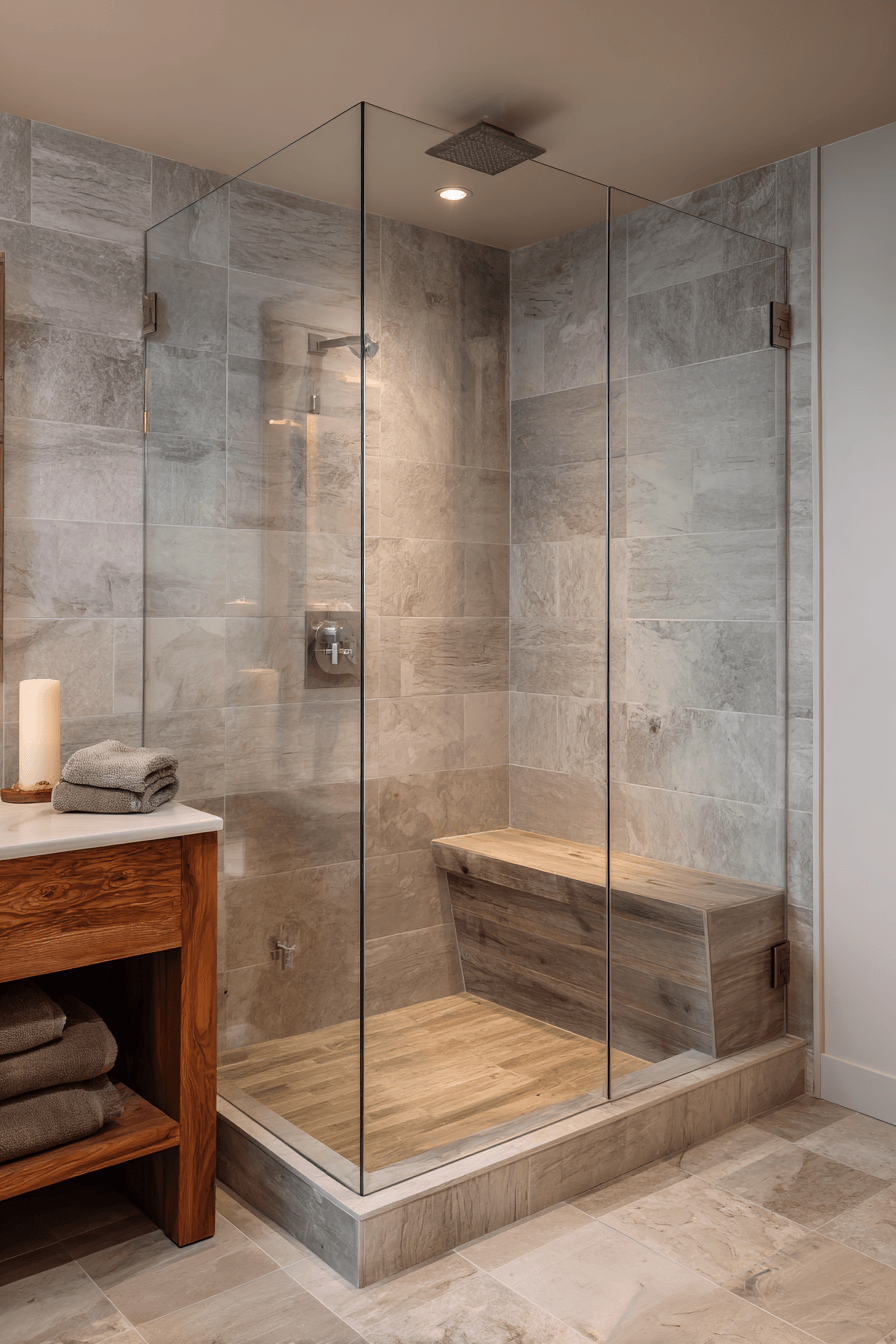 A coastal zen shower room blends spa simplicity with seaside influence. In a beach house bathroom, natural stone tiles and frameless glass create a serene focal point. The muted palette keeps everything feeling calm and uncluttered. Subtle wood accents warm up the cool surfaces. The result feels modern, balanced, and tranquil. Click to bring zen energy into your coastal home.