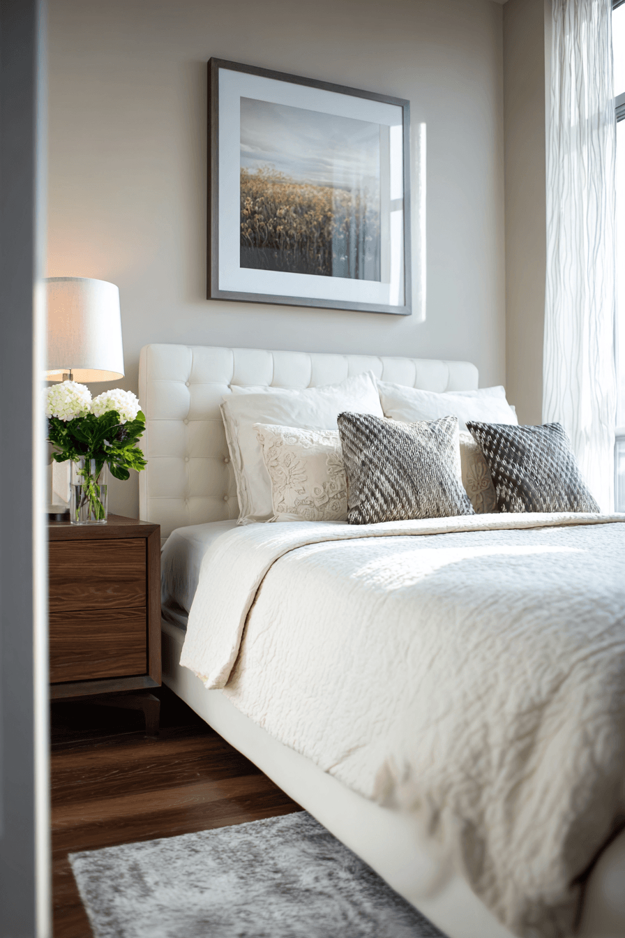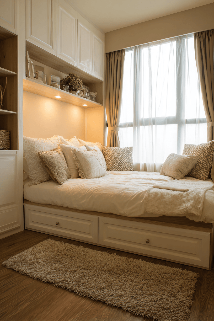 A refined, upscale feel can still be achieved in compact spaces by elevating your design choices within bedroom ideas for small rooms. Selecting premium fabrics, elegant lighting, and carefully curated accents brings a sense of luxury without overcrowding. Focusing on quality over quantity keeps the space both stylish and functional. This approach creates a cozy yet sophisticated retreat. Explore more compact luxury inspiration here!