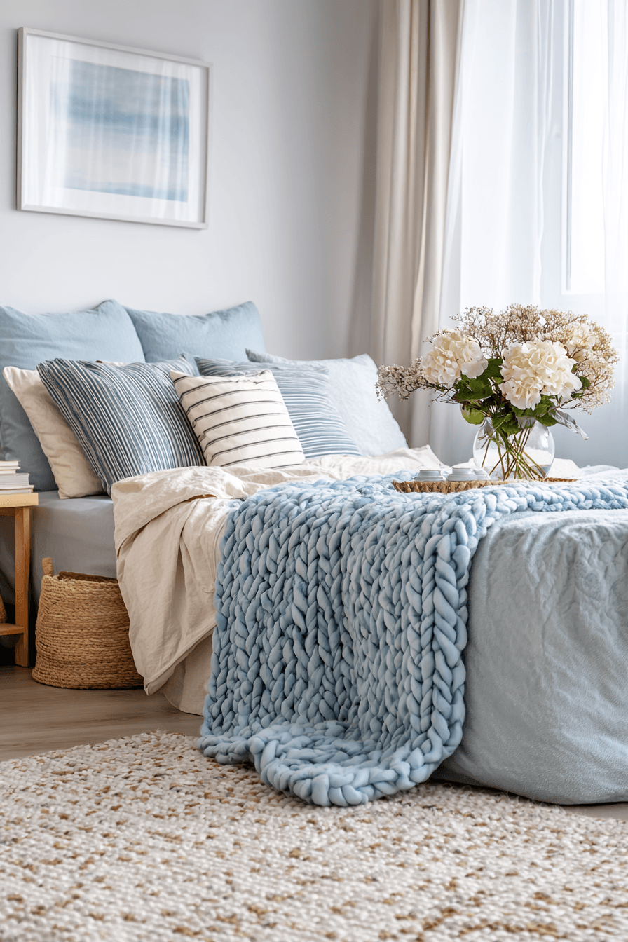 Bring a relaxed seaside vibe into your space by incorporating soft blues, sandy neutrals, and airy fabrics within your bedroom ideas for small rooms. Natural light and lightweight textures help create a refreshing, breezy atmosphere. Thoughtfully selected furniture keeps the layout open and uncluttered. This coastal-inspired style makes even compact spaces feel like a peaceful retreat. Click to discover more coastal looks!