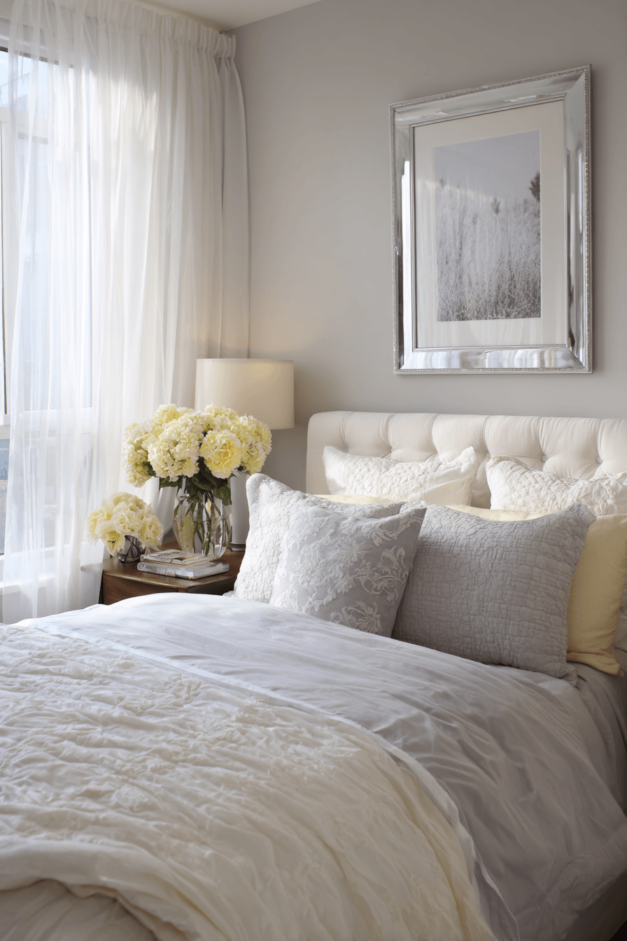 A monochrome color scheme can bring a sleek, cohesive look to bedroom ideas for small rooms while enhancing the sense of openness. Layering different shades of the same tone adds subtle depth without breaking up the visual flow. This approach keeps the design polished and easy to accessorize. It’s an effortless way to achieve a refined, modern feel. Tap to browse more monochrome inspiration!