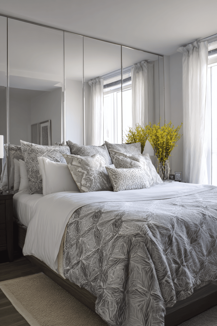 Mirrors are a simple yet powerful way to visually expand a space, making them a must-have in bedroom ideas for small rooms. Whether you choose one large statement mirror or arrange several smaller ones, they reflect light beautifully and brighten the entire room. This technique instantly creates depth and elegance without adding clutter. Mirrored walls can even elevate the space with a more luxurious feel. Explore more mirror styling ideas now!
