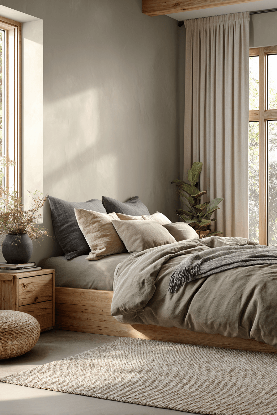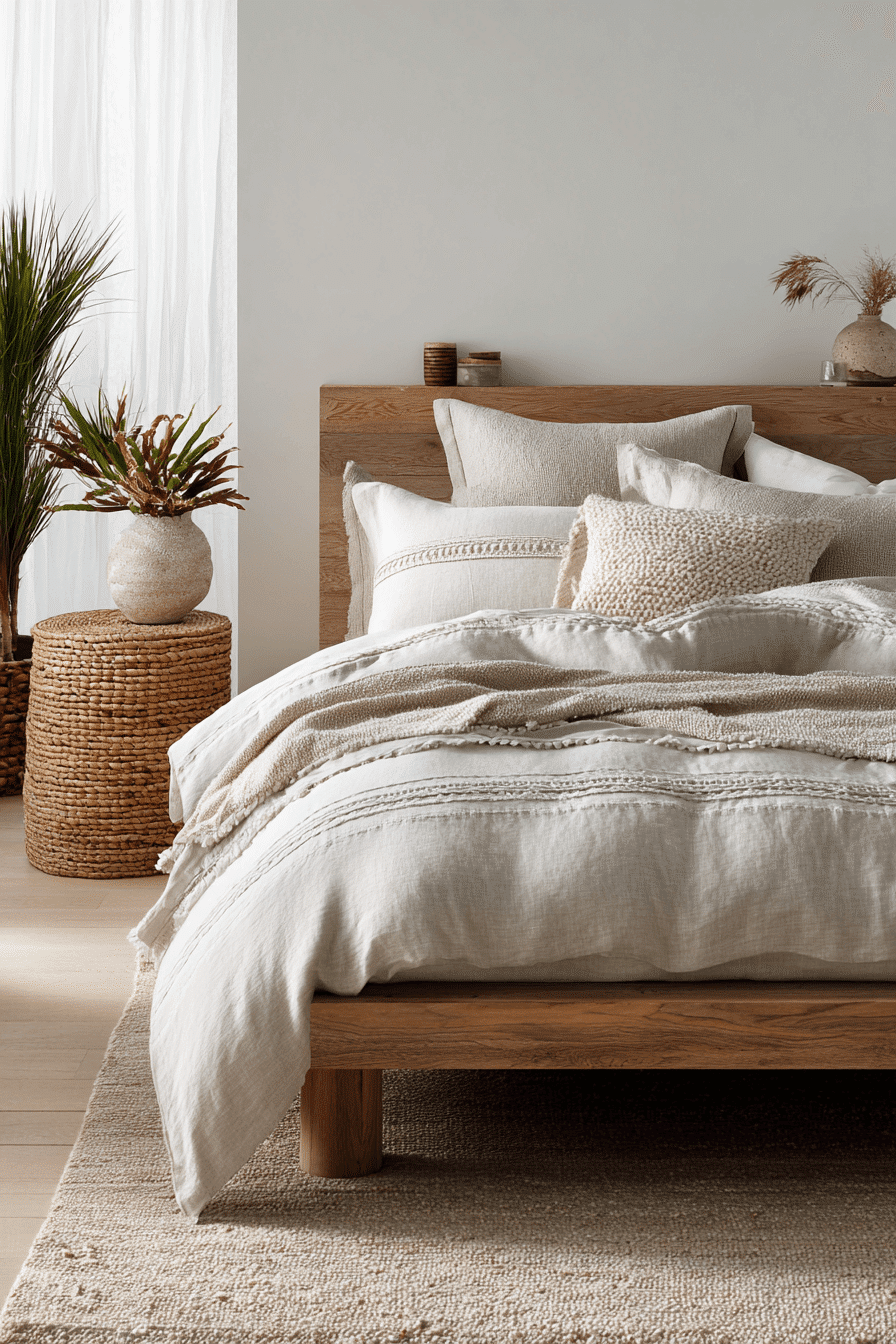 Warm linen dream centers around breathable fabrics and soft natural fibers. Linen bedding in creamy or sandy tones creates an effortless, lived-in elegance. This works beautifully within calming bedroom ideas because texture plays a huge role in how a room feels emotionally. The slight wrinkles and softness add authenticity and warmth. The space feels relaxed, unpretentious, and deeply comfortable. Discover how linen can transform your sleep routine.
