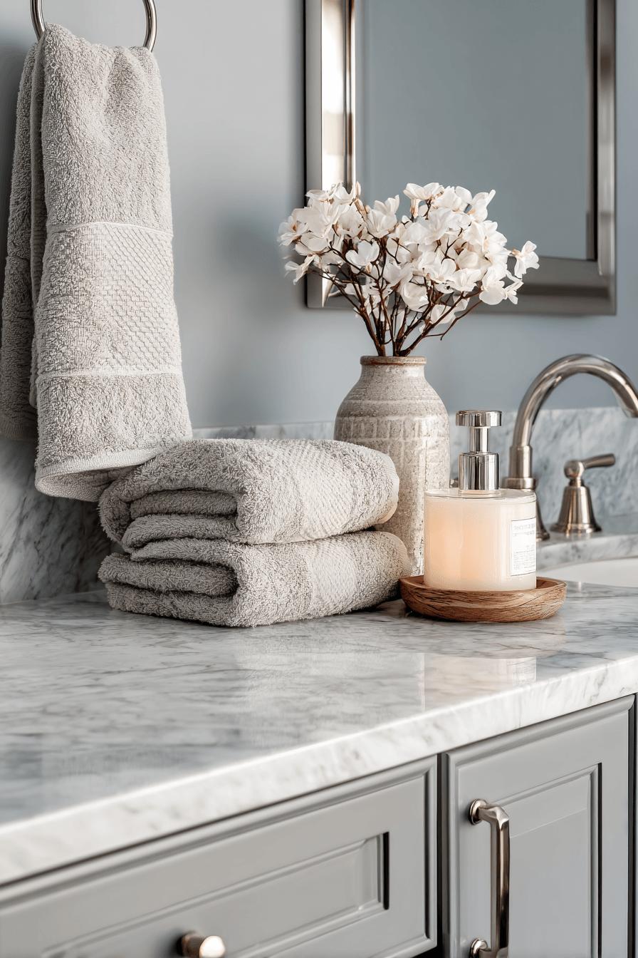 Soft, understated luxury adds a refined edge to coastal bathroom ideas without losing that breezy feel. Think smooth stone surfaces, gentle metallic accents, and calming lighting that elevates the entire space. Keep decorative touches minimal but meaningful, like coral-inspired art or delicate sea-glass pieces. A palette of soft neutrals and pale ocean hues keeps everything feeling cohesive and serene. It’s a perfect blend of elegance and coastal comfort. Step into coastal bathroom ideas that feel quietly luxurious and beautifully designed!