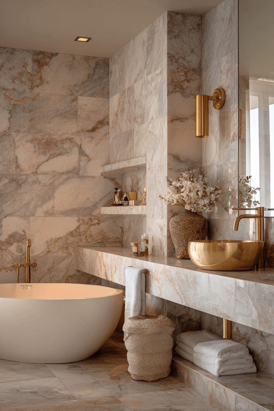 Blending marble with sandy hues gives coastal bathroom ideas a refined and elevated look. Warm beige tones and soft veining mimic the shoreline while adding a sense of luxury. Paired with polished fixtures and bright white elements, the space feels balanced and inviting. Subtle coastal accents like shells or sea glass complete the look without overpowering it. The result is both elegant and grounded in beach-inspired beauty. Get inspired by coastal bathroom ideas that bring marble and sand together beautifully!