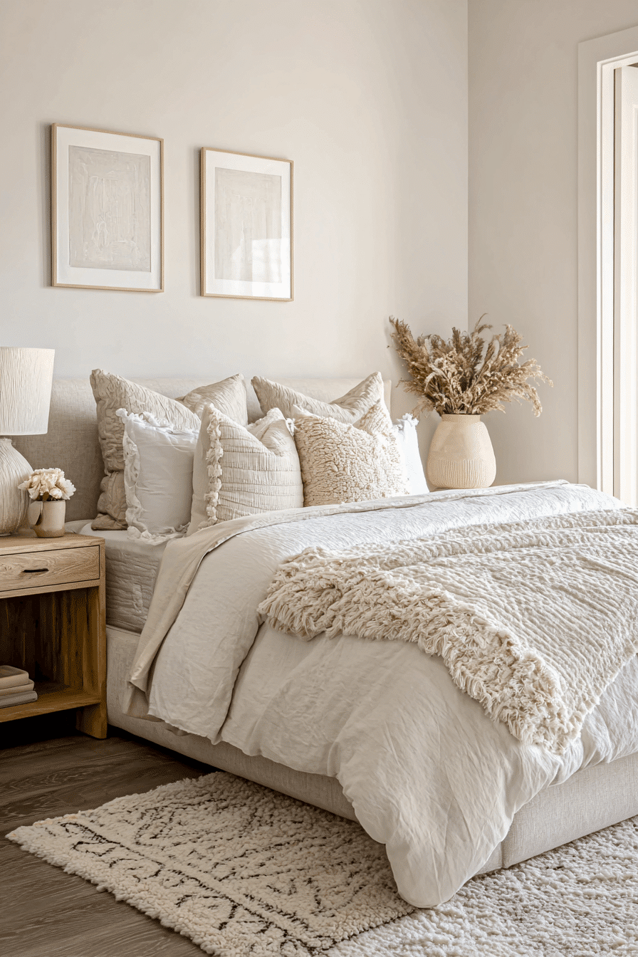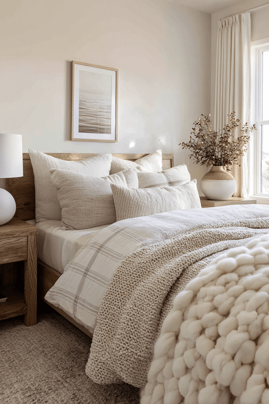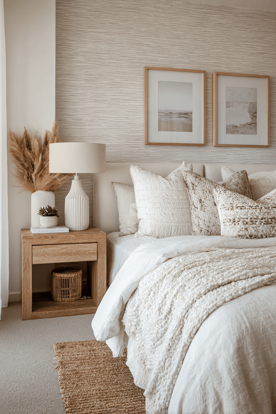 Soft textures and light tones make a coastal guest bedroom feel instantly welcoming. Layered fabrics like linen, cotton, and knit throws add comfort and depth. The space feels calm and uncluttered, perfect for guest relaxation. Natural wood finishes and woven elements bring warmth without heaviness. Gentle lighting enhances the cozy atmosphere and softens the overall look. Every element contributes to a cohesive and stylish design. Click to explore more cozy coastal bedroom styles!