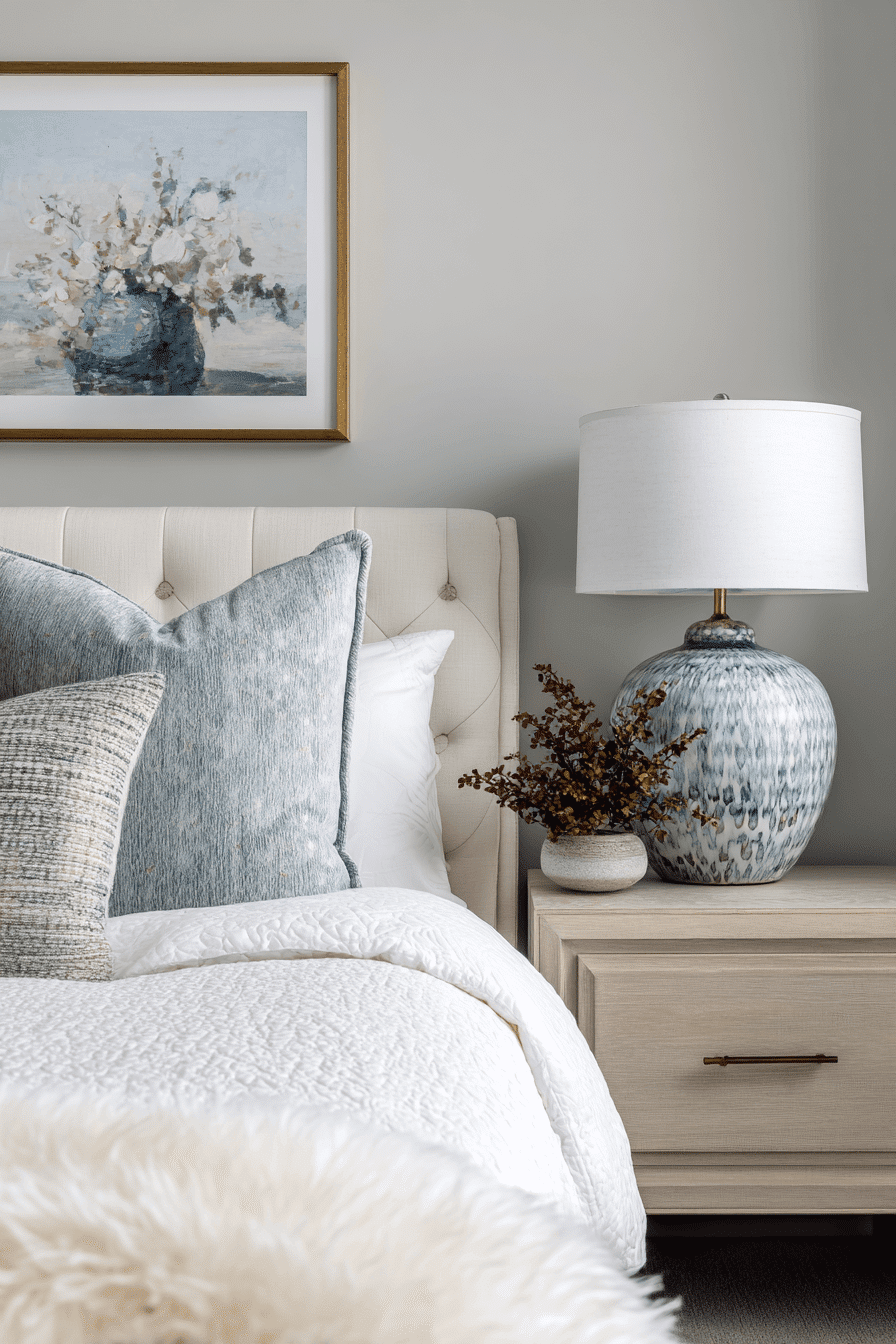 A coastal guest bedroom comes alive with subtle color contrasts and natural textures. Light woods paired with soft fabrics create a relaxed yet elevated feel. Gentle contrasts between crisp whites and muted blues add visual interest without distraction. The layout remains functional, ensuring guests feel comfortable and at ease. Layered textures keep the room from feeling flat while maintaining a clean look. Gentle lighting highlights the design without overwhelming it. The overall mood is calm, stylish, and welcoming. Explore more effortless coastal bedroom looks here!