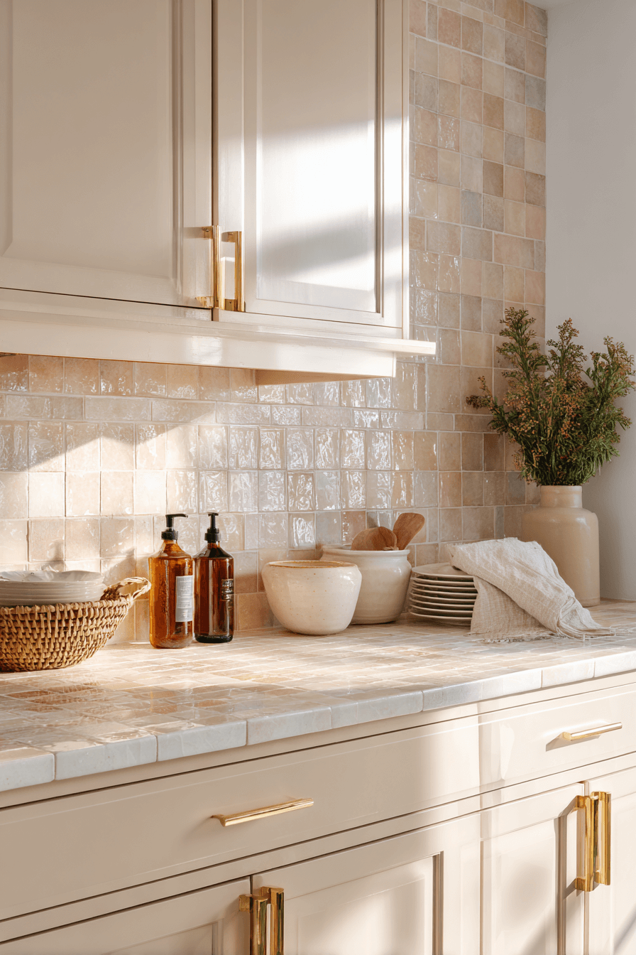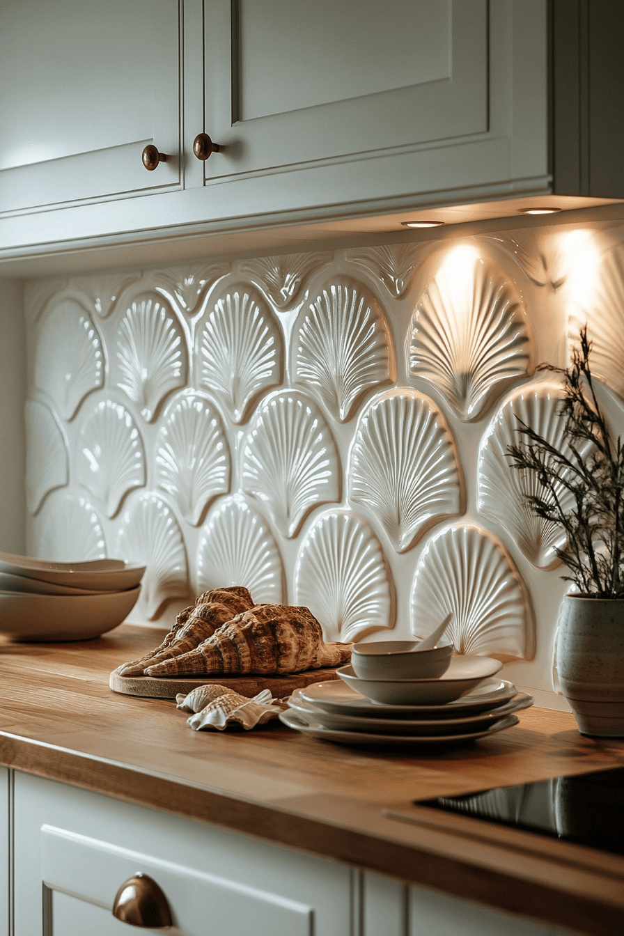 13. Shell-Toned Textured Backsplash